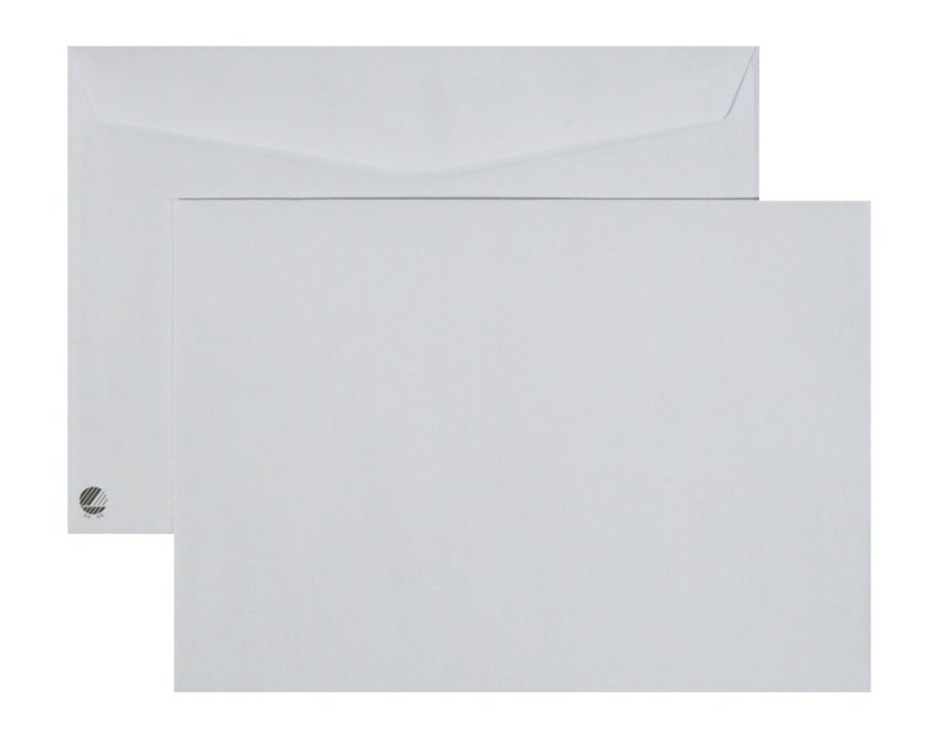 • Vita kuvert med heltäckande grått innertryck