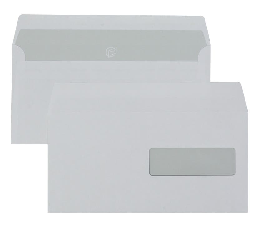 Vita Sober kuvert i olika storlekar, med heltäckande grått innertryck. Fukthäftande med fönster i olika storlekar.