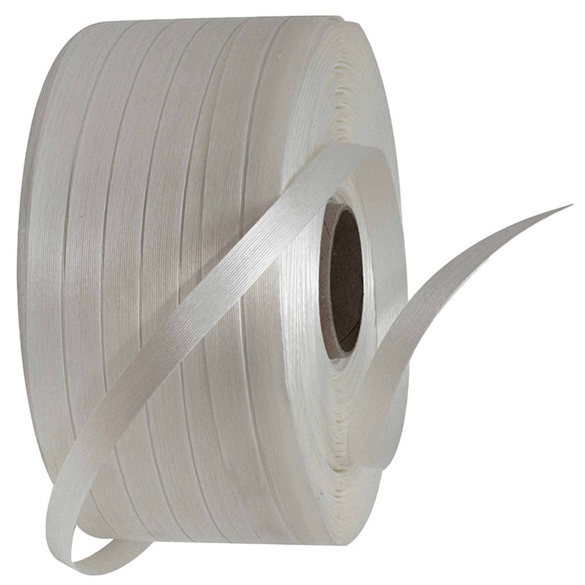 Används tillsammans med sträckare och spännen av metall. För bandning av kartonger och fixering av gods på pall. Lättare hantering än stålband.