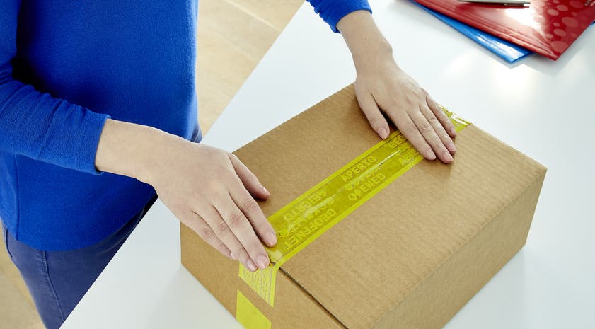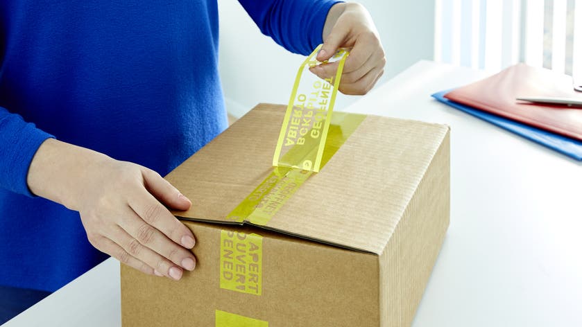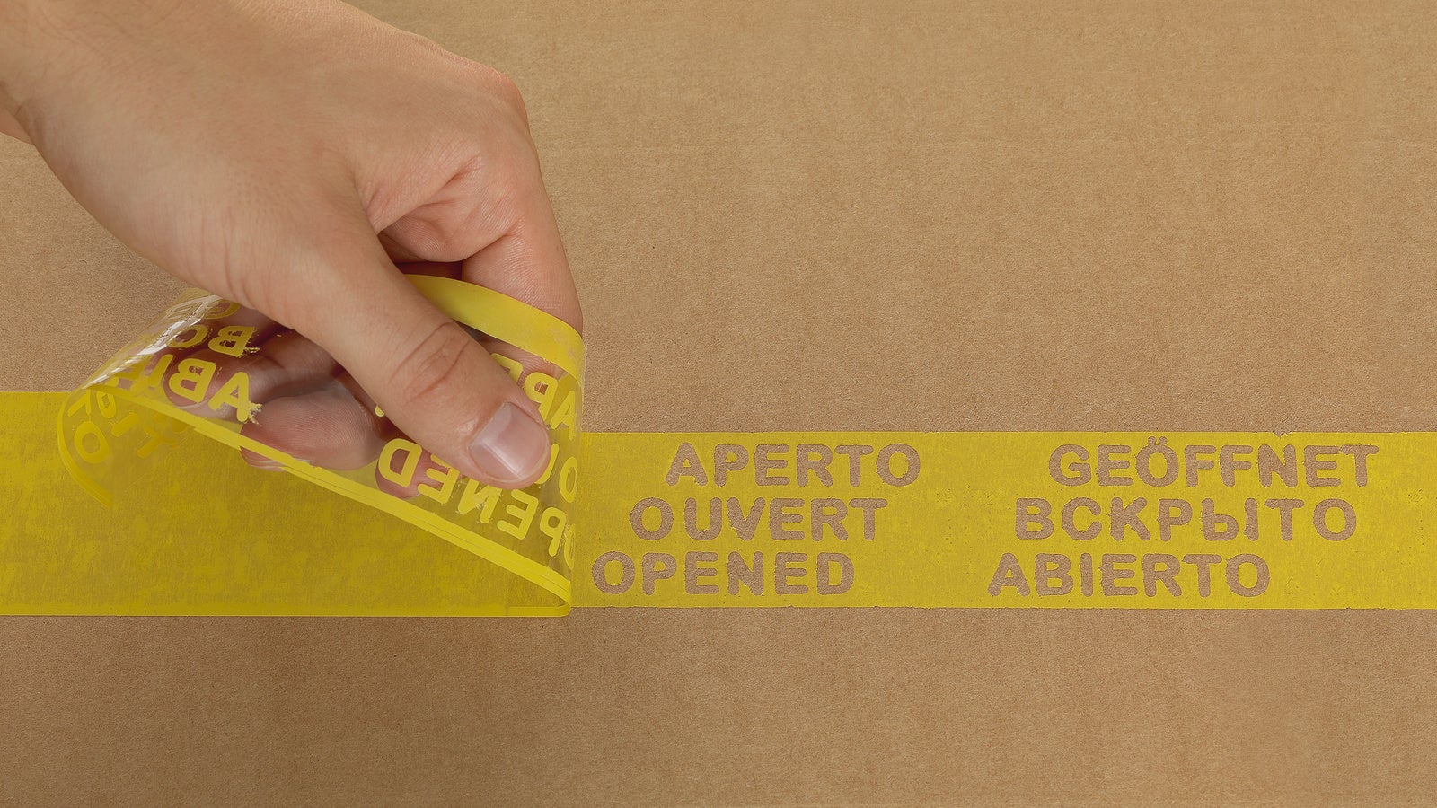 Säkerhets-/plomberingstejp med BOPP-bärare och ett vattenbaserat häftämne av akryl – utvecklat för att förhindra obemärkt öppning och återförslutning av pappkartonger. Efter den har applicerats kan tejpen inte tas bort utan att den skiktar sig. Texten "öppnad" framträder på flera olika språk och förblir klart synlig även vid återförslutning av lådan. Tejpen appliceras som en vanlig packtejp med en dispenser eller maskin utrustad med broms.