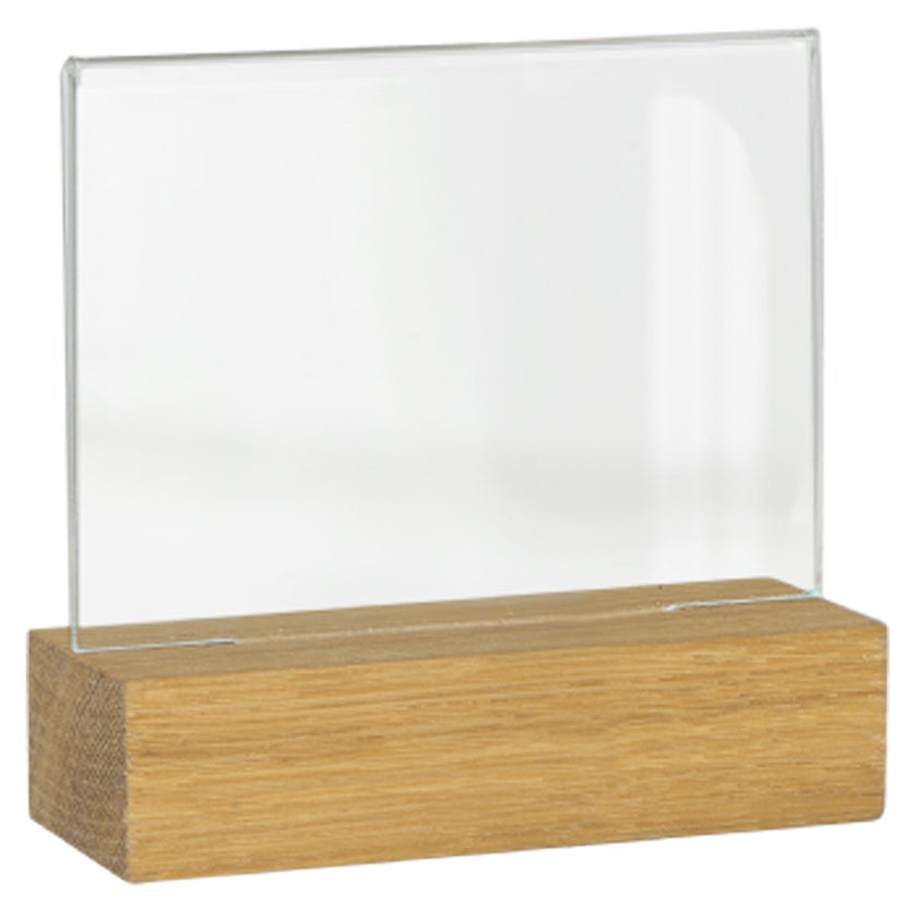 • Glasklar akryl och fot i ek