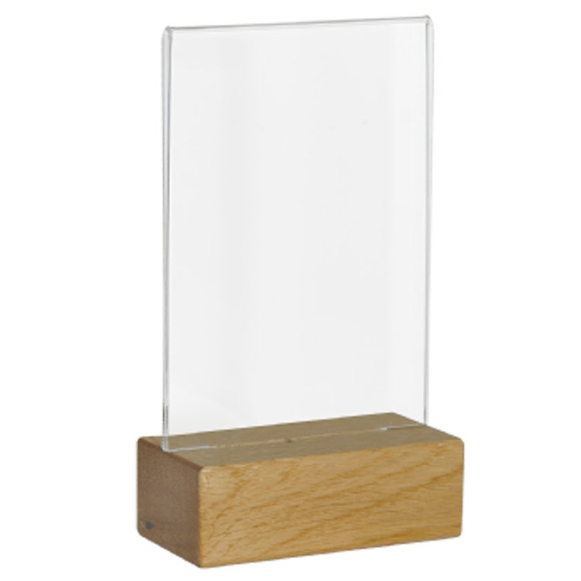 Akrylskylt med träfot A7 stående