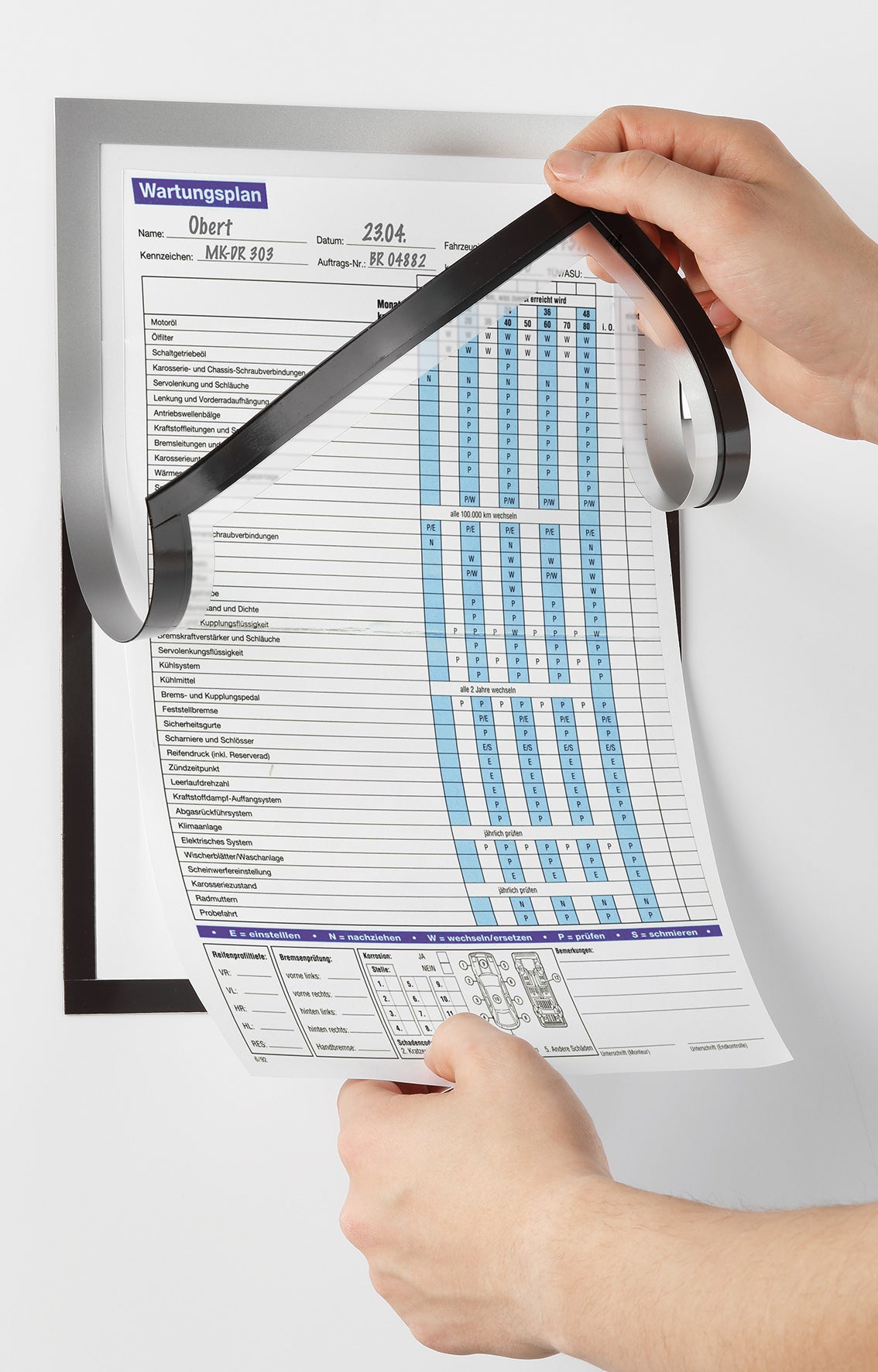 Använd magnethäftande DURAFRAME® MAGNETIC NOTE inforamar för t ex checklistor där noteringar skall göras direkt på pappret.