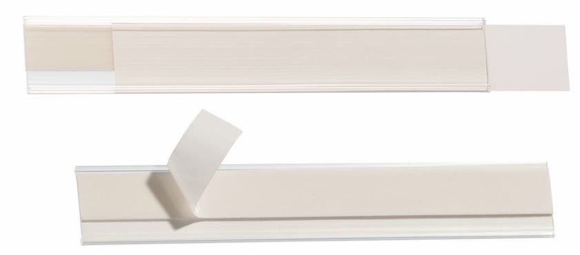 Transparenta och självhäftande SCANFIX® hyllkantslister/etiketthållare. De har en öppning både upptill och på sidan vilket gör att man med lätthet kan byta etiketter ofta. För uppmärkning av exempelvis lådor och hyllkanter. Vita etiketter ingår och listerna kan klippas till valfri längd. Gratis mall för att designa och skriva ut etiketter finns på www.duraprint.se.