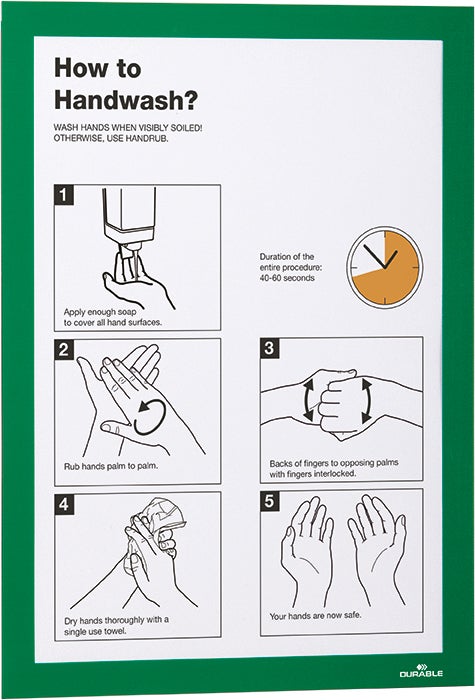 Använd självhäftande DURAFRAME® inforamar för att visa och presentera kampanjerbjudanden, öppettider, skyltar och annan tillfällig eller mer varaktig information på ett professionellt sätt. Enkelt att sätta i eller skifta budskap genom att lyfta framsidan med magnetstängning. Lätt att sätta upp - utan verktyg eller andra tillbehör - på fasta och släta ytor. Snyggare och enklare hantering än t ex tejp, häftstift eller häftklammer. Ramen ser likadan ut på fram och baksidan, vilket är bra när den placeras på glasrutor för dubbelsidigt budskap. Ramen går att ta bort från glasrutor. Målade, belagda eller laminerade ytor kan skadas om ramen tas bort. * Finns i flera färger * Finns i flera storlekar * 2 st/fp Monteringsanvisning och ansvarsfriskrivning: * Undvik att fästa självhäftande DURAFRAME® på målade, belagda eller laminerade ytor samt underlag som tapeter, porösa material och non-stick ytor * Se till att den yta som används är fri från damm, fett och smuts som kan påverka fästförmågan hos klistret * Säkerställ att nymålade eller lackerade ytor har torkat ordentligt innan du applicerar DURAFRAME® självhäftande inforam * Användare rekommenderas att kontrollera skicket på ytan före användning. DURABLE tar inte ansvar för eventuella skador som uppkommit genom felaktig användning * För användning på känsliga underlag som t ex tapeter, vänligen använd DURAFRAME® WALLPAPER * För användning på solexponerade glasytor rekommenderar vi DURAFRAME® SUN Då denna vara specialbeställs vid order, omfattas den inte av Office Depots retur-/ångerrätt vid köp i egenskap av företag eller annan juridisk person.