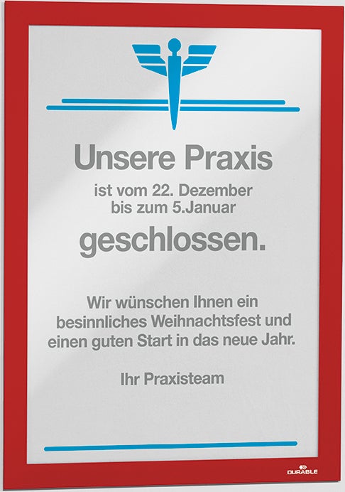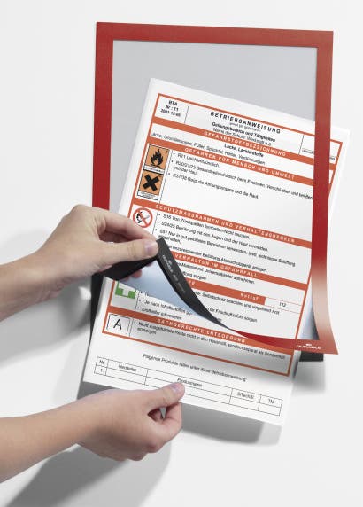 Använd självhäftande DURAFRAME® inforamar för att visa och presentera kampanjerbjudanden, öppettider, skyltar och annan tillfällig eller mer varaktig information på ett professionellt sätt. Enkelt att sätta i eller skifta budskap genom att lyfta framsidan med magnetstängning. Lätt att sätta upp - utan verktyg eller andra tillbehör - på fasta och släta ytor. Snyggare och enklare hantering än t ex tejp, häftstift eller häftklammer.