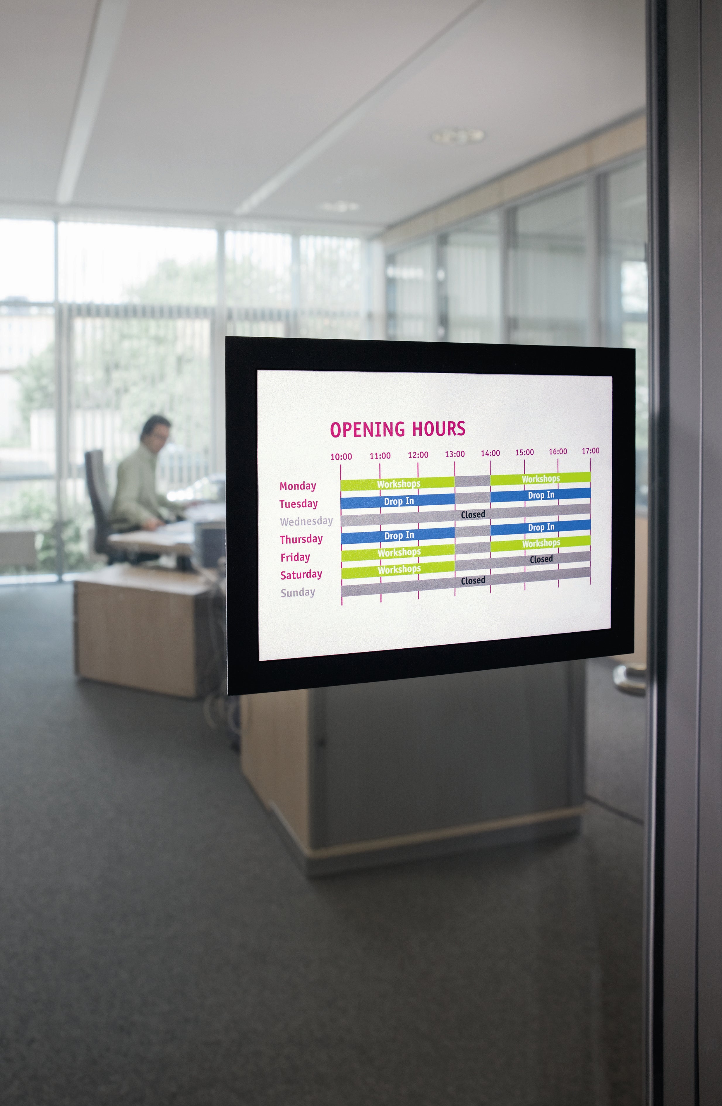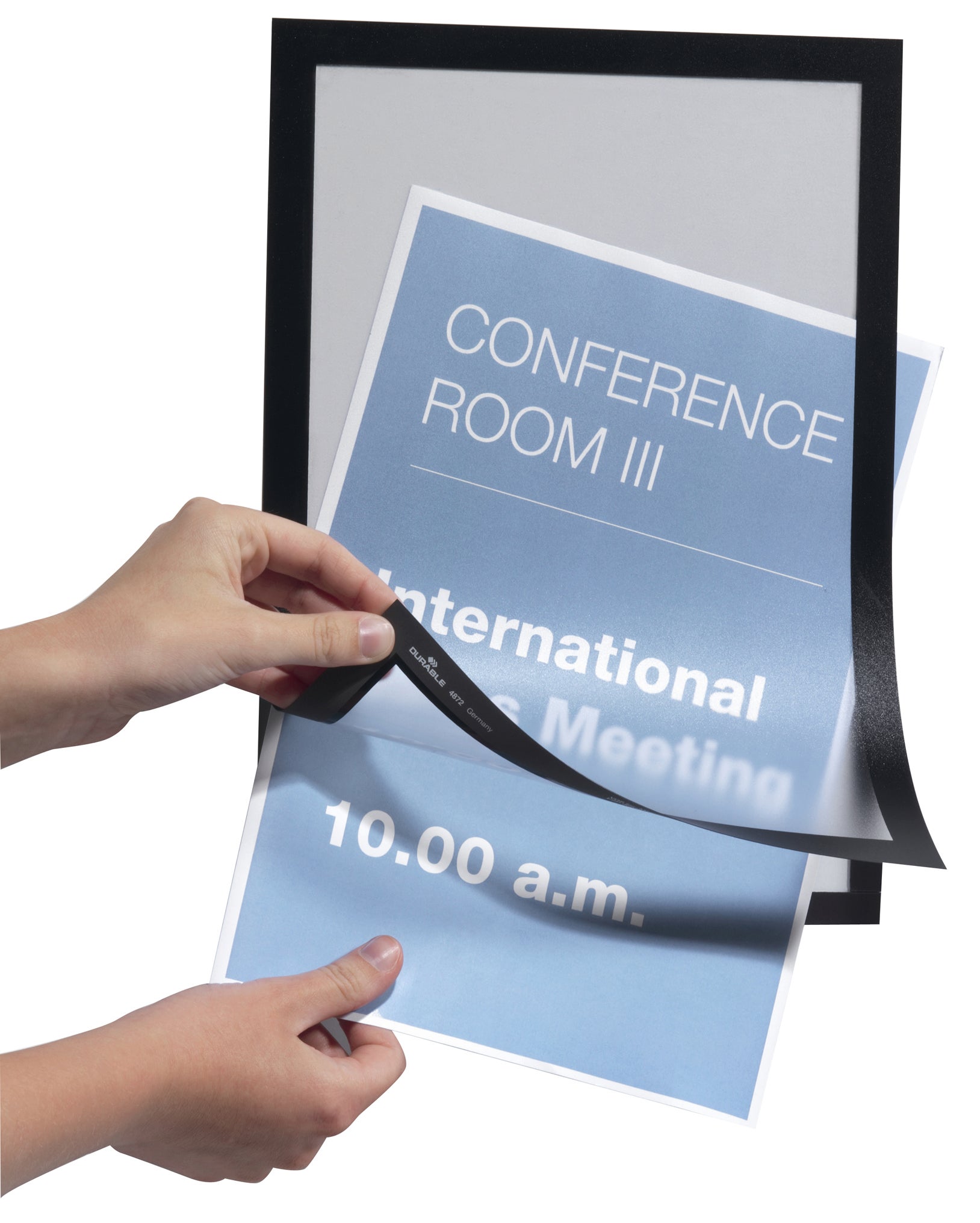 Använd självhäftande DURAFRAME® inforamar för att visa och presentera kampanjerbjudanden, öppettider, skyltar och annan tillfällig eller mer varaktig information på ett professionellt sätt. Enkelt att sätta i eller skifta budskap genom att lyfta framsidan med magnetstängning. Lätt att sätta upp - utan verktyg eller andra tillbehör - på fasta och släta ytor. Snyggare och enklare hantering än t ex tejp, häftstift eller häftklammer. Ramen ser likadan ut på fram och baksidan, vilket är bra när den placeras på glasrutor för dubbelsidigt budskap. Ramen går att ta bort från glasrutor. Målade, belagda eller laminerade ytor kan skadas om ramen tas bort. * Finns i flera färger * Finns i flera storlekar * 2 st/fp Monteringsanvisning och ansvarsfriskrivning: * Undvik att fästa självhäftande DURAFRAME® på målade, belagda eller laminerade ytor samt underlag som tapeter, porösa material och non-stick ytor * Se till att den yta som används är fri från damm, fett och smuts som kan påverka fästförmågan hos klistret * Säkerställ att nymålade eller lackerade ytor har torkat ordentligt innan du applicerar DURAFRAME® självhäftande inforam * Användare rekommenderas att kontrollera skicket på ytan före användning. DURABLE tar inte ansvar för eventuella skador som uppkommit genom felaktig användning * För användning på känsliga underlag som t ex tapeter, vänligen använd DURAFRAME® WALLPAPER * För användning på solexponerade glasytor rekommenderar vi DURAFRAME® SUN Då denna vara specialbeställs vid order, omfattas den inte av Office Depots retur-/ångerrätt vid köp i egenskap av företag eller annan juridisk person.
