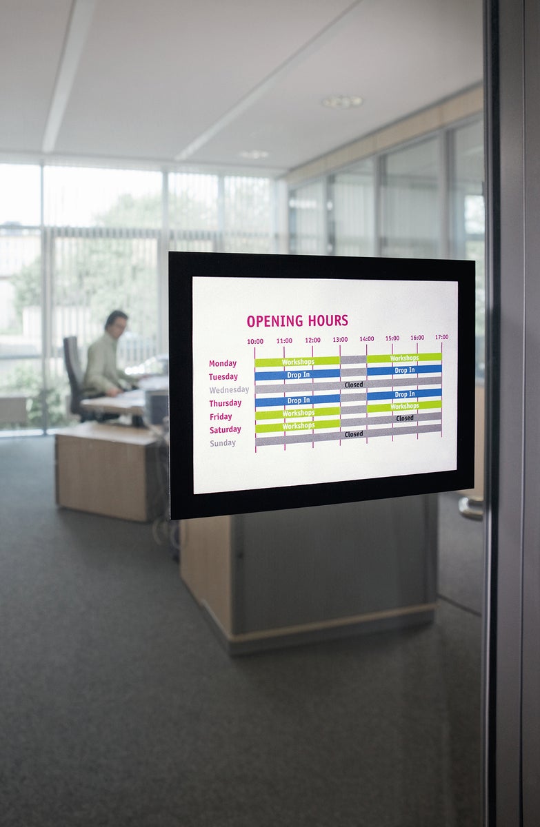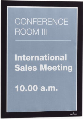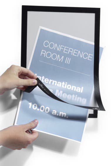 Använd självhäftande DURAFRAME® inforamar för att visa och presentera kampanjerbjudanden, öppettider, skyltar och annan tillfällig eller mer varaktig information på ett professionellt sätt. Enkelt att sätta i eller skifta budskap genom att lyfta framsidan med magnetstängning. Lätt att sätta upp - utan verktyg eller andra tillbehör - på fasta och släta ytor. Snyggare och enklare hantering än t ex tejp, häftstift eller häftklammer.