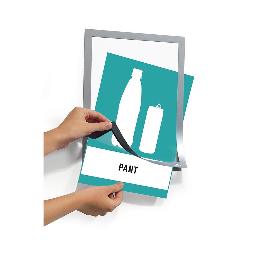 Använd självhäftande DURAFRAME® inforamar för att visa och presentera kampanjerbjudanden, öppettider, skyltar och annan tillfällig eller mer varaktig information på ett professionellt sätt. Enkelt att sätta i eller skifta budskap genom att lyfta framsidan med magnetstängning. Lätt att sätta upp - utan verktyg eller andra tillbehör - på fasta och släta ytor. Snyggare och enklare hantering än t ex tejp, häftstift eller häftklammer. Ramen ser likadan ut på fram och baksidan, vilket är bra när den placeras på glasrutor för dubbelsidigt budskap. Ramen går att ta bort från glasrutor. Målade, belagda eller laminerade ytor kan skadas om ramen tas bort. * Finns i flera färger * Finns i flera storlekar * Finns i olika antal: 6 eller 10 st/fp Monteringsanvisning och ansvarsfriskrivning: * Undvik att fästa självhäftande DURAFRAME® på målade, belagda eller laminerade ytor samt underlag som tapeter, porösa material och non-stick ytor * Se till att den yta som används är fri från damm, fett och smuts som kan påverka fästförmågan hos klistret * Säkerställ att nymålade eller lackerade ytor har torkat ordentligt innan du applicerar DURAFRAME® självhäftande inforam * Användare rekommenderas att kontrollera skicket på ytan före användning. DURABLE tar inte ansvar för eventuella skador som uppkommit genom felaktig användning * För användning på känsliga underlag som t ex tapeter, vänligen använd DURAFRAME® WALLPAPER * För användning på solexponerade glasytor rekommenderar vi DURAFRAME® SUN Då denna vara specialbeställs vid order, omfattas den inte av Office Depots retur-/ångerrätt vid köp i egenskap av företag eller annan juridisk person.