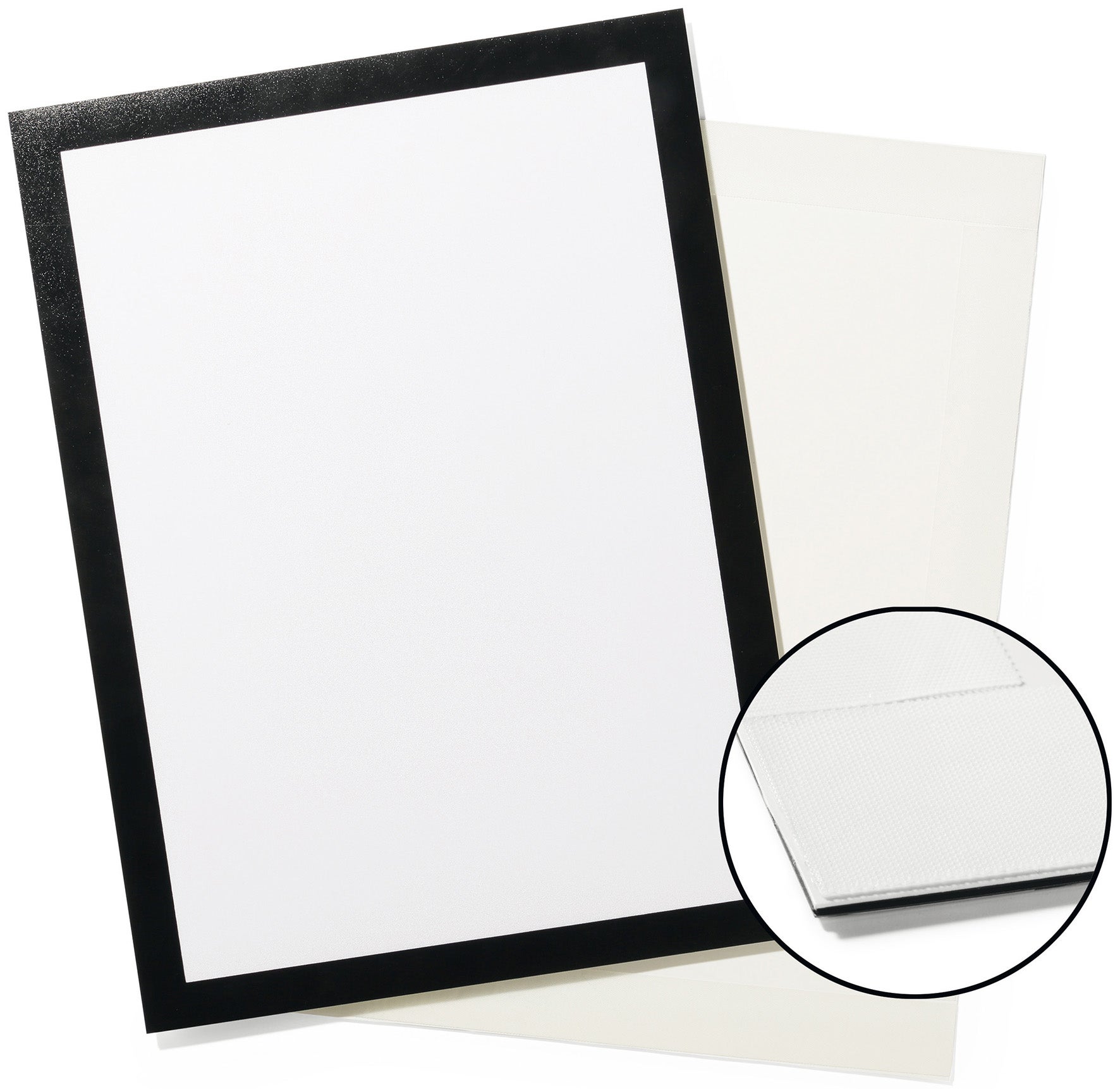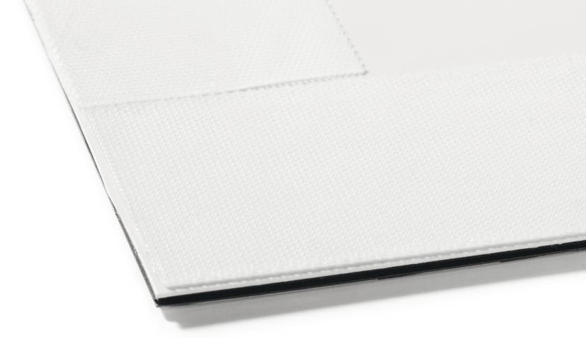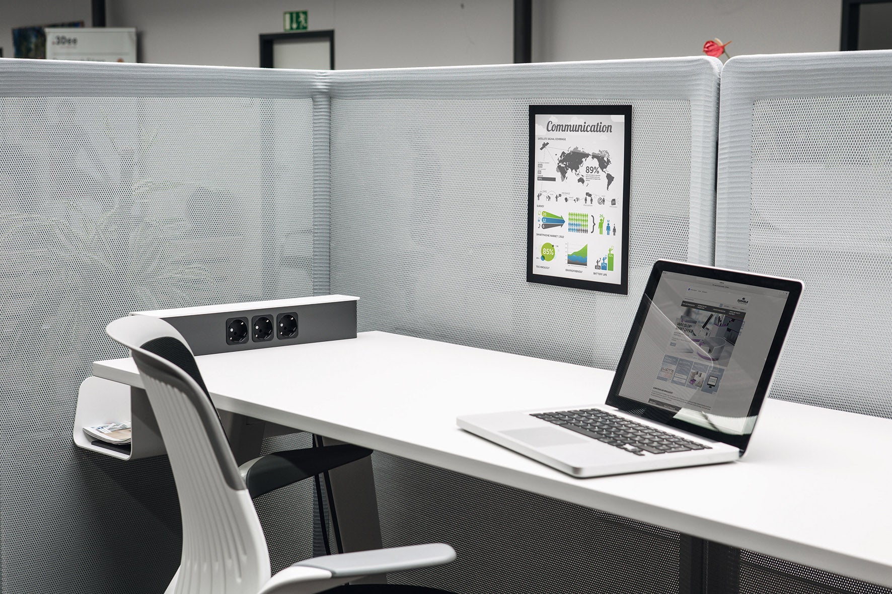 Lätt att sätta upp - utan verktyg eller andra tillbehör - på skärmväggar, ljudabsorbenter och anslagstavlor av textil. Se till att baksidan inte kommer i kontakt med dina kläder när du sätter upp den, eftersom den fina kardborrytan på baksidan kan skada dina kläder.