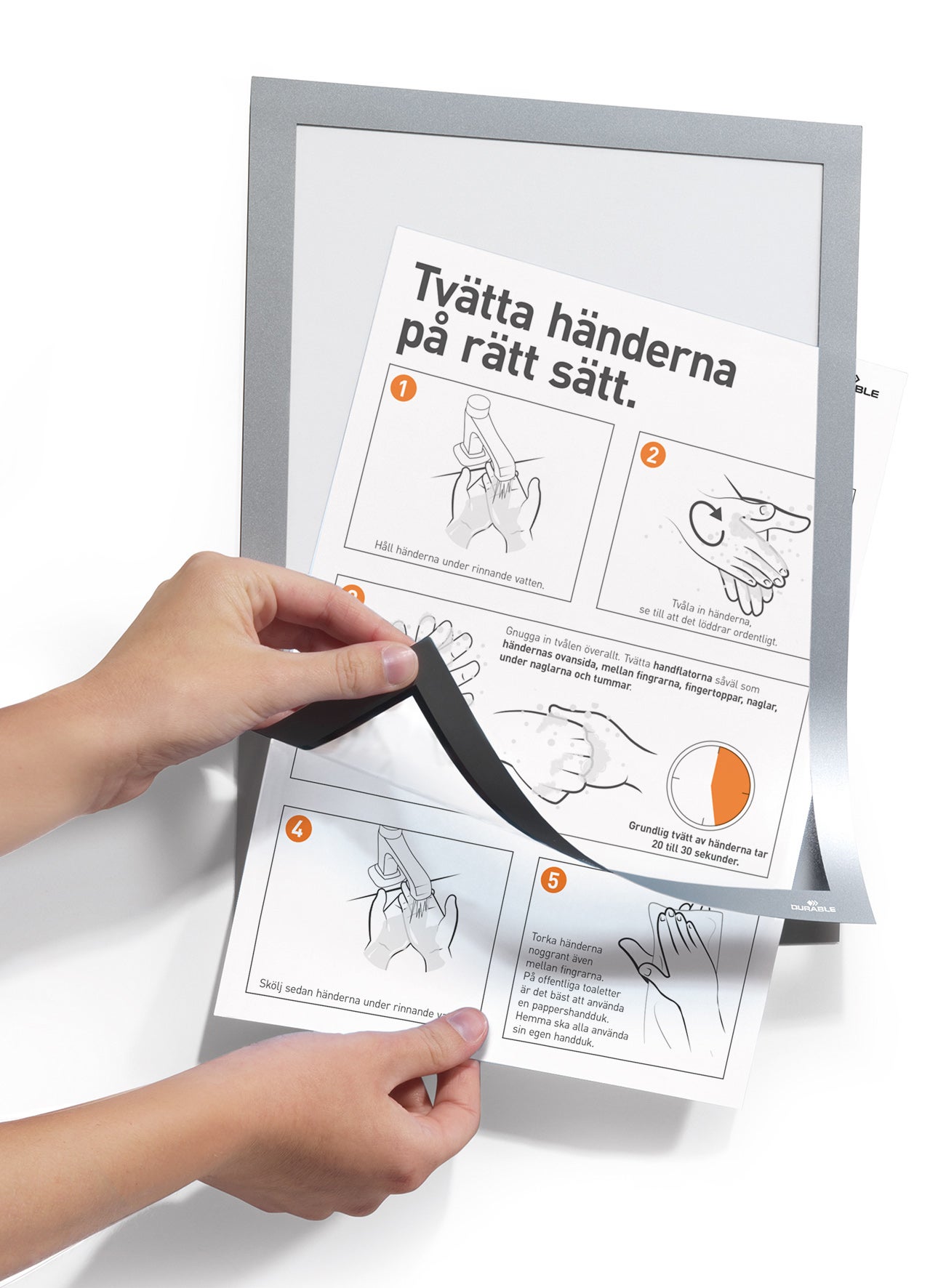 Använd självhäftande Duraframe® Poster inforamar för att visa och presentera kampanjerbjudanden, öppettider, och reklam i stora format på ett professionellt sätt. Enkelt att sätta i eller skifta budskap genom att lyfta framsidan med magnetstängning. Lätt att sätta upp utan verktyg eller andra tillbehör. PET-folie för användning på glas som utsätts för solljus. Ramen rymmer två affischer. Ramen ser likadan ut på fram och baksidan, vilket är bra när den placeras i skyltfönster för dubbelsidigt budskap. Ramen går att ta bort från glasrutor. Målade, belagda eller laminerade ytor kan skadas om ramen tas bort. Baksidan har 2 självhäftande remsor på kortsidorna (så att produkten kan rullas på längden), sparar utrymme och logistikkostnader. * Finns i flera färger * Finns i flera storlekar * Förslutning med magnetiska bitar på långsidor, billigare och möjliggör rullning * 1 st/fp Monteringsanvisning och ansvarsfriskrivning: * Undvik att fästa självhäftande Duraframe® på målade, belagda eller laminerade ytor samt underlag som tapeter, porösa material och non-stick ytor * Se till att den yta som används är fri från damm, fett och smuts som kan påverka fästförmågan hos klistret * Säkerställ att nymålade eller lackerade ytor har torkat ordentligt innan du applicerar självhäftande Duraframe® Poster * Användare rekommenderas att kontrollera skicket på ytan före användning. Durable tar inte ansvar för eventuella skador som uppkommit genom felaktig användning * För användning på känsliga underlag som t ex tapeter, vänligen använd Duraframe® Wallpaper Observera att artiklar märkta med "Beställningsvara" specialbeställs vid order och omfattas därmed inte av Office Depots retur-/ångerrätt vid köp i egenskap av företag eller annan juridisk person.