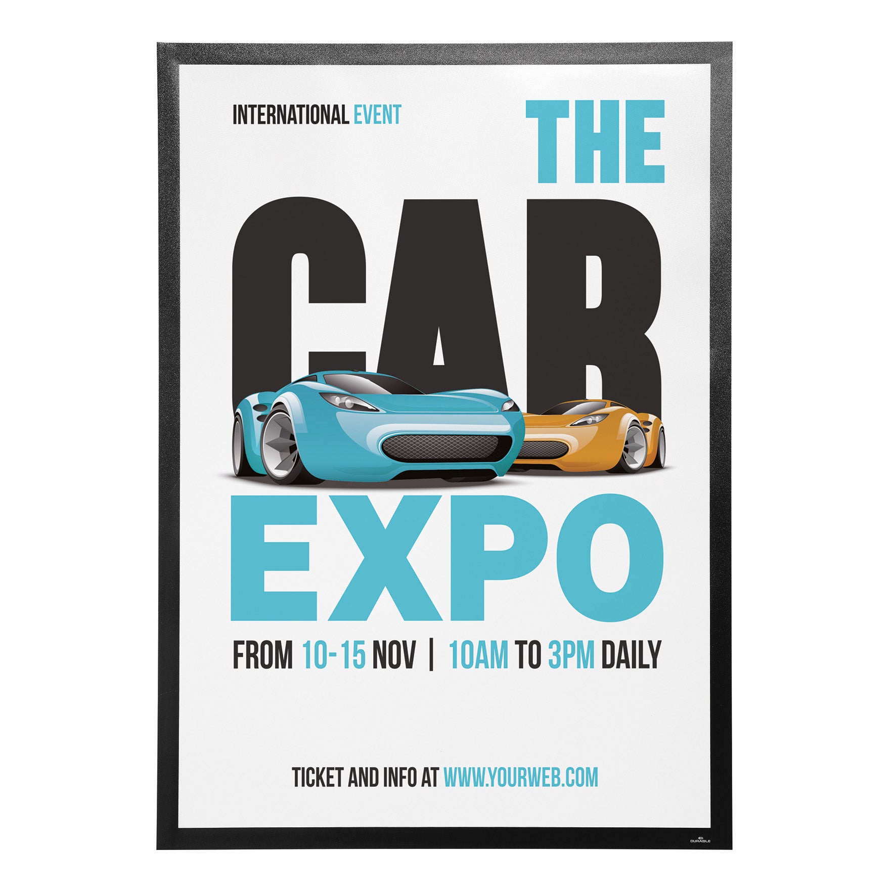 Använd självhäftande Duraframe® Poster inforamar för att visa och presentera kampanjerbjudanden, öppettider, och reklam i stora format på ett professionellt sätt. Enkelt att sätta i eller skifta budskap genom att lyfta framsidan med magnetstängning. Lätt att sätta upp utan verktyg eller andra tillbehör. PET-folie för användning på glas som utsätts för solljus. Ramen rymmer två affischer. Ramen ser likadan ut på fram och baksidan, vilket är bra när den placeras i skyltfönster för dubbelsidigt budskap. Ramen går att ta bort från glasrutor. Målade, belagda eller laminerade ytor kan skadas om ramen tas bort. Baksidan har 2 självhäftande remsor på kortsidorna (så att produkten kan rullas på längden), sparar utrymme och logistikkostnader. * Finns i flera färger * Finns i flera storlekar * Förslutning med magnetiska bitar på långsidor, billigare och möjliggör rullning * 1 st/fp Monteringsanvisning och ansvarsfriskrivning: * Undvik att fästa självhäftande Duraframe® på målade, belagda eller laminerade ytor samt underlag som tapeter, porösa material och non-stick ytor * Se till att den yta som används är fri från damm, fett och smuts som kan påverka fästförmågan hos klistret * Säkerställ att nymålade eller lackerade ytor har torkat ordentligt innan du applicerar självhäftande Duraframe® Poster * Användare rekommenderas att kontrollera skicket på ytan före användning. Durable tar inte ansvar för eventuella skador som uppkommit genom felaktig användning * För användning på känsliga underlag som t ex tapeter, vänligen använd Duraframe® Wallpaper Observera att artiklar märkta med "Beställningsvara" specialbeställs vid order och omfattas därmed inte av Office Depots retur-/ångerrätt vid köp i egenskap av företag eller annan juridisk person.