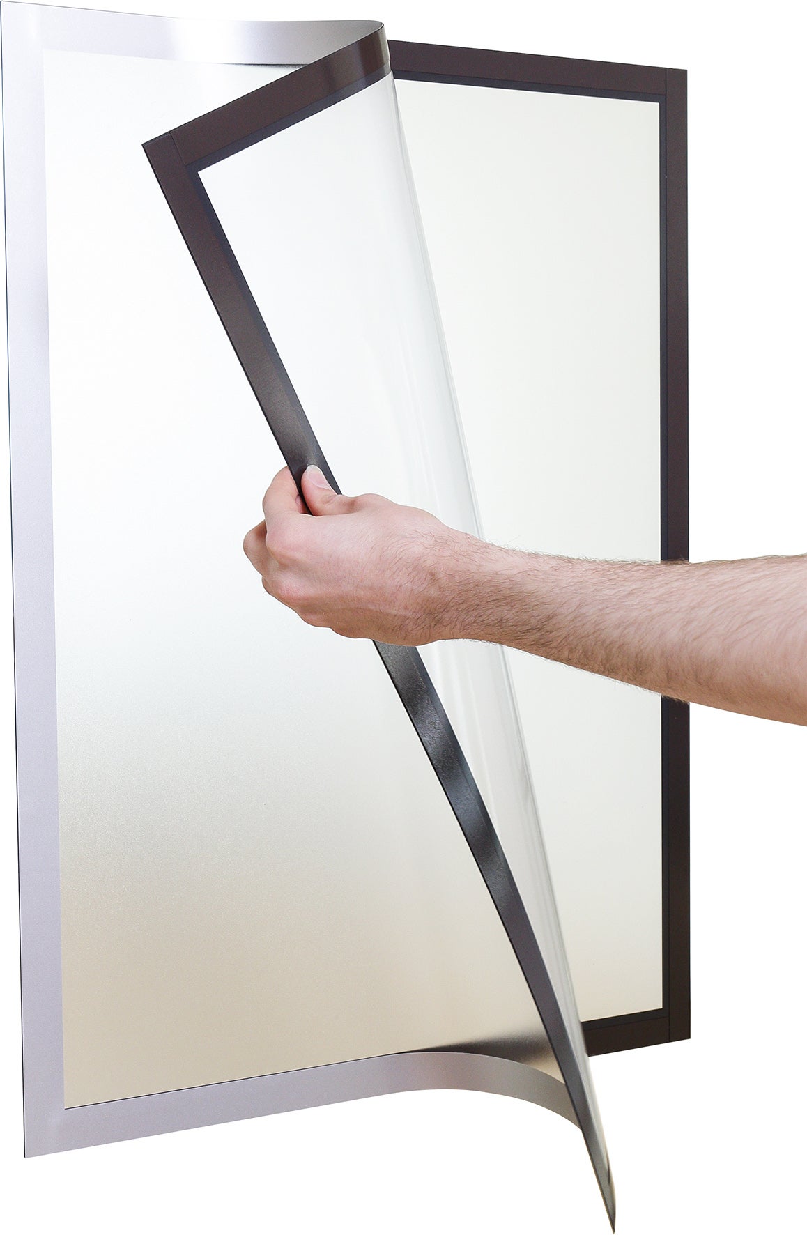 Använd självhäftande Duraframe® Poster inforamar för att visa och presentera kampanjerbjudanden, öppettider, och reklam i stora format på ett professionellt sätt. Enkelt att sätta i eller skifta budskap genom att lyfta framsidan med magnetstängning. Lätt att sätta upp utan verktyg eller andra tillbehör. PET-folie för användning på glas som utsätts för solljus. Ramen rymmer två affischer. Ramen ser likadan ut på fram och baksidan, vilket är bra när den placeras i skyltfönster för dubbelsidigt budskap. Ramen går att ta bort från glasrutor. Målade, belagda eller laminerade ytor kan skadas om ramen tas bort. Baksidan har 2 självhäftande remsor på kortsidorna (så att produkten kan rullas på längden), sparar utrymme och logistikkostnader. * Finns i flera färger * Finns i flera storlekar * Förslutning med magnetiska bitar på långsidor, billigare och möjliggör rullning * 1 st/fp Monteringsanvisning och ansvarsfriskrivning: * Undvik att fästa självhäftande Duraframe® på målade, belagda eller laminerade ytor samt underlag som tapeter, porösa material och non-stick ytor * Se till att den yta som används är fri från damm, fett och smuts som kan påverka fästförmågan hos klistret * Säkerställ att nymålade eller lackerade ytor har torkat ordentligt innan du applicerar självhäftande Duraframe® Poster * Användare rekommenderas att kontrollera skicket på ytan före användning. Durable tar inte ansvar för eventuella skador som uppkommit genom felaktig användning * För användning på känsliga underlag som t ex tapeter, vänligen använd Duraframe® Wallpaper Observera att artiklar märkta med "Beställningsvara" specialbeställs vid order och omfattas därmed inte av Office Depots retur-/ångerrätt vid köp i egenskap av företag eller annan juridisk person.