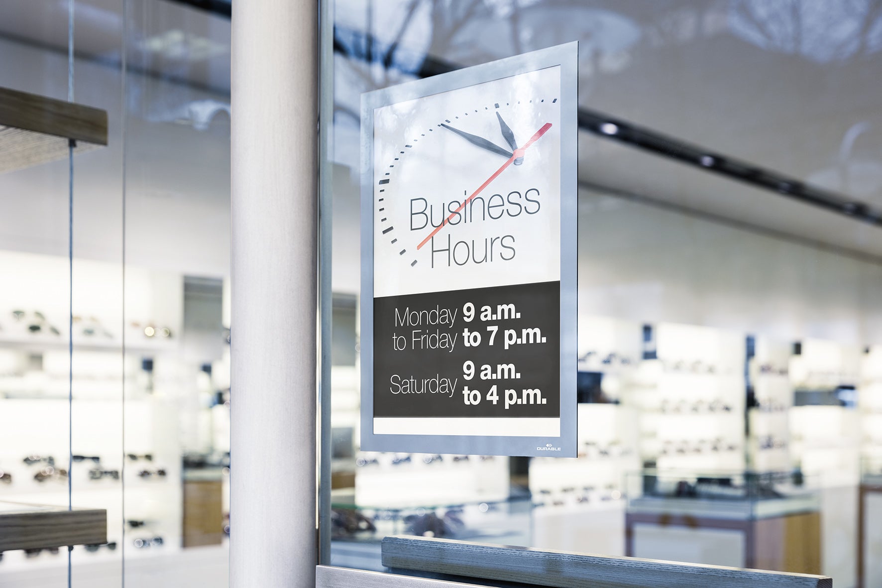 Använd DURAFRAME® SUN inforamar för att visa och presentera kampanjerbjudanden, öppettider, reklam mm på ett proffsigt sätt i skyltfönster som utsätts för solljus. Enkelt att sätta i eller skifta budskap genom att lyfta framsidan med magnetstängning. Lätt att sätta upp - spraya bara lite vatten utblandat med en droppe diskmedel på baksidan så fäster ramen statiskt på glasytan. Snyggare än tejp! Kan användas flera gånger och lämnar inga spår efter sig. Ramen ser likadan ut på fram och baksidan. * Finns i flera färger * 2 st/fp * Värmetålig upp till 70° och UV-stabil upp till 2 år * För dokument i A4 eller A3 format * Yttermått: A4: 236 x 323 mm, A3: 323 x 446 mm Då denna vara specialbeställs vid order, omfattas den inte av Office Depots retur-/ångerrätt vid köp i egenskap av företag eller annan juridisk person.