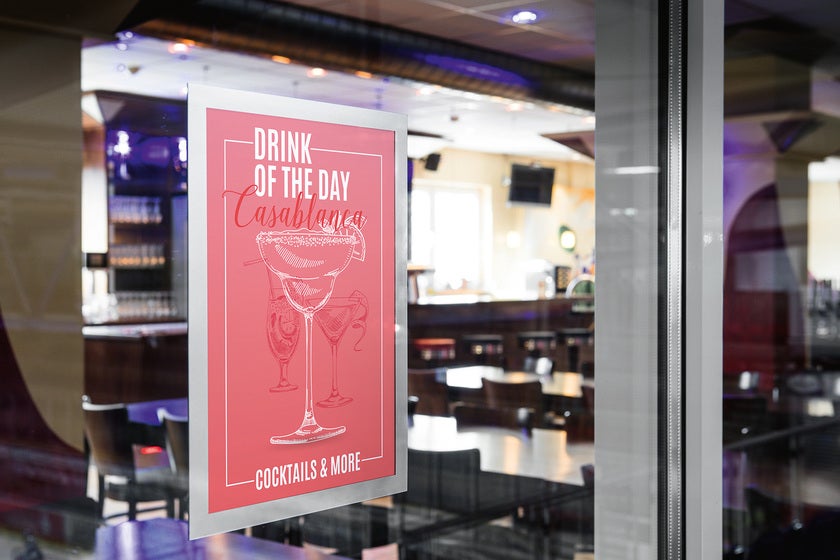 Använd DURAFRAME® SUN inforamar för att visa och presentera kampanjerbjudanden, öppettider, reklam mm på ett proffsigt sätt i skyltfönster som utsätts för solljus.