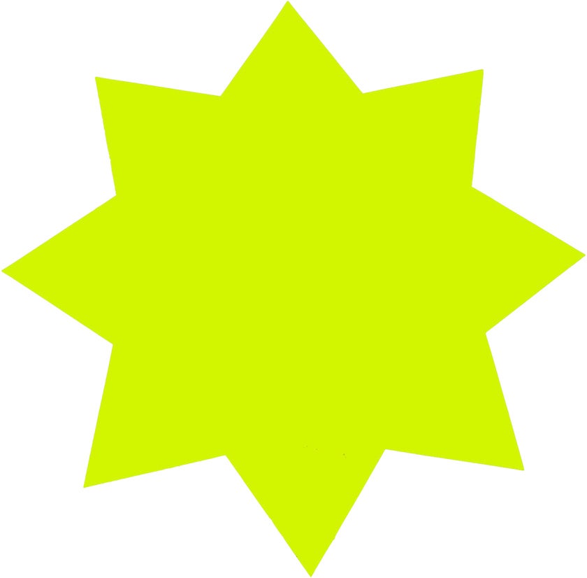 Dubbelsidig kartong format som en stjärna. För textning till displayer av priser eller information i skyltar eller ramar.