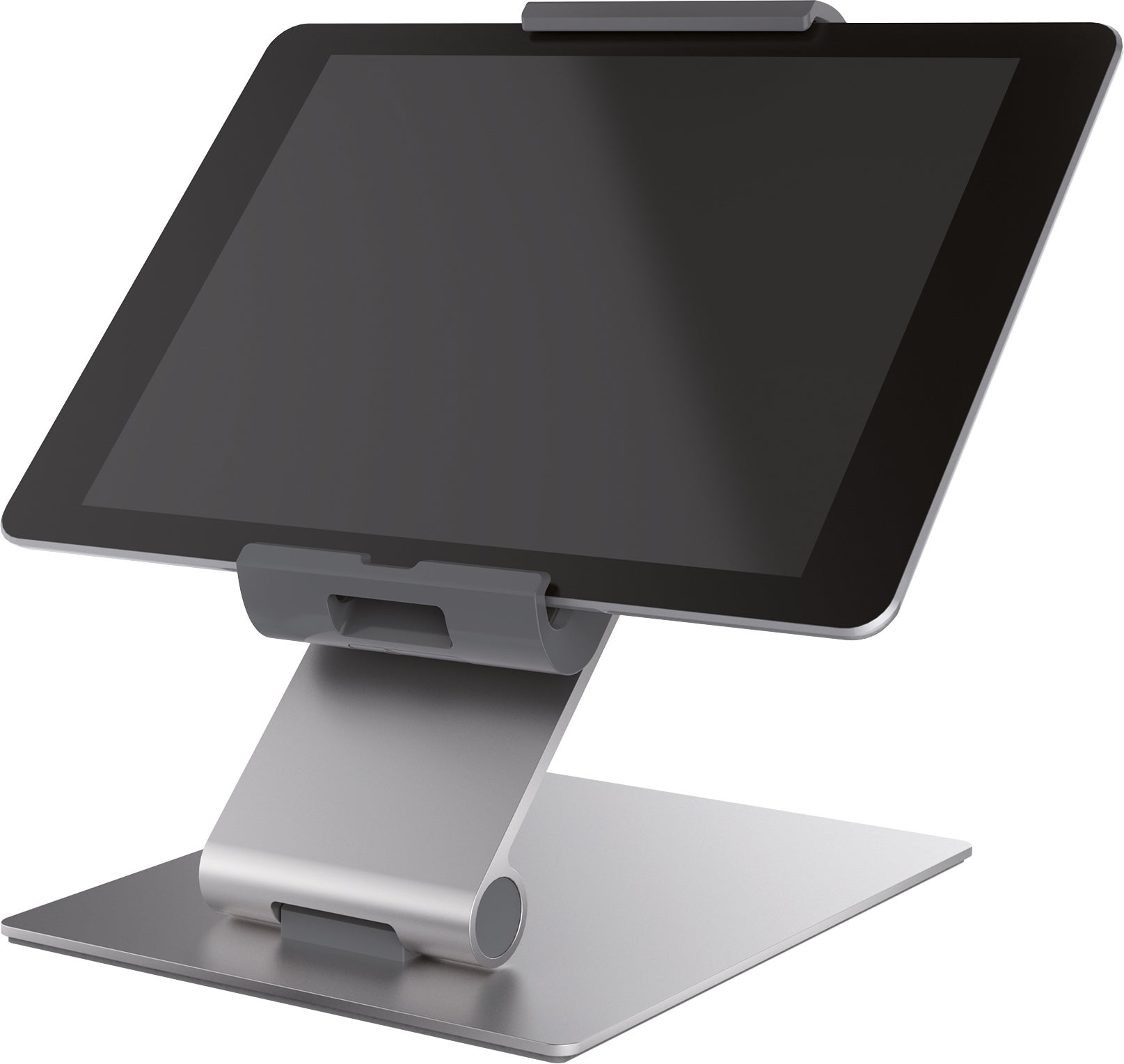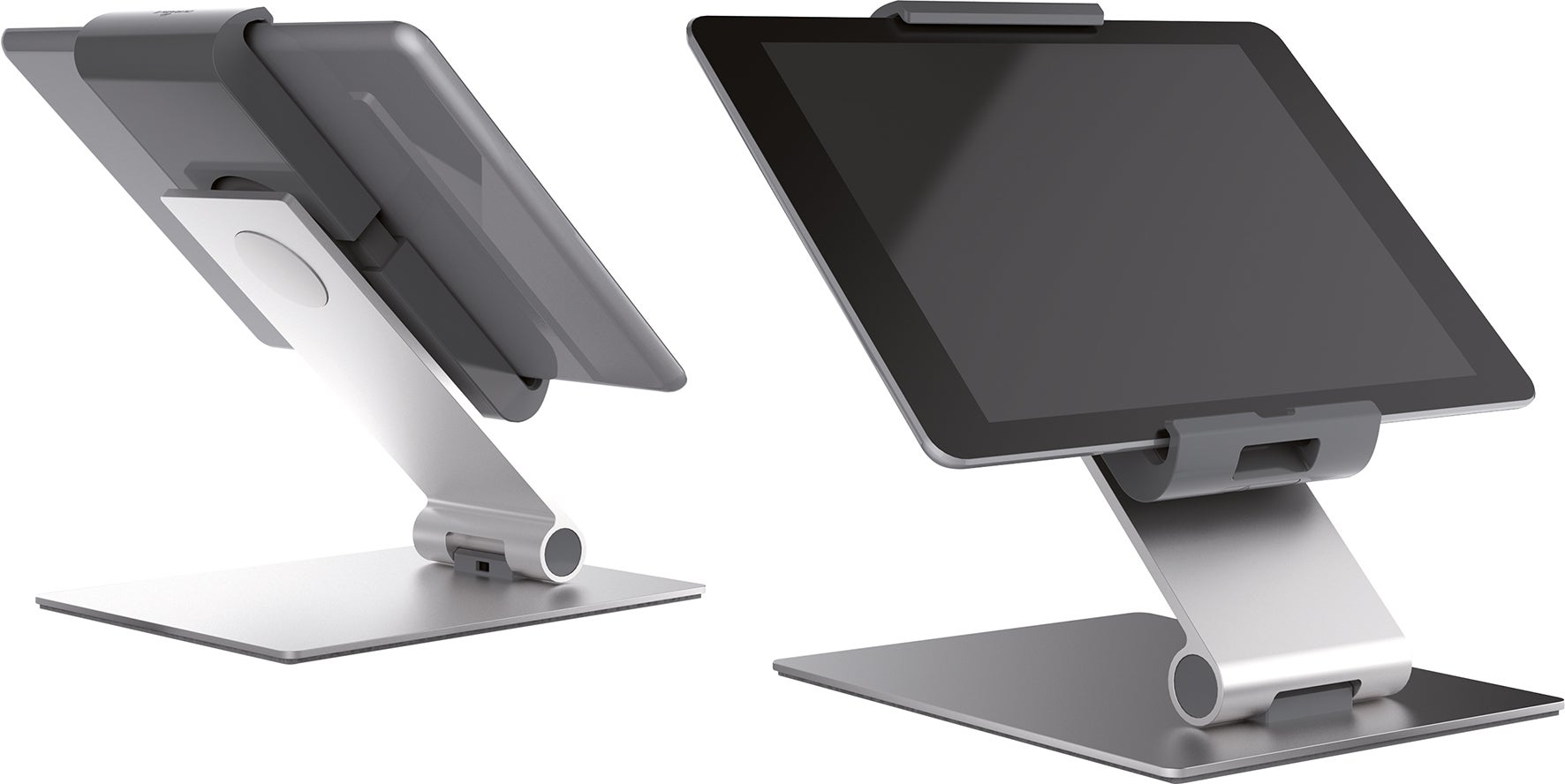 Surfplattehållare i en snygg och funktionell design för surfplattor i storlek 7"-13" (160- 275 mm). För informationsdelning och presentationer i butiker, receptioner, försäljnings- och utställningslokaler. Stabilt och stadigt bordsstativ som är steglöst vinklingsbart från 0° till 88°.