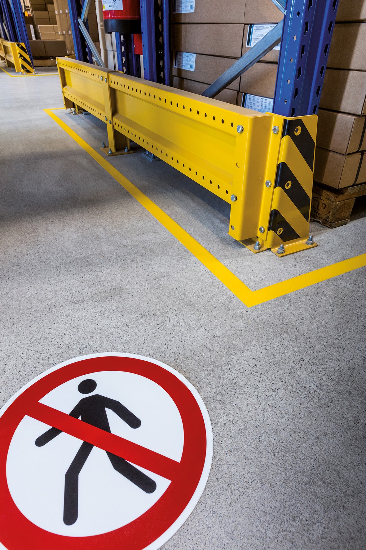 Självhäftande stor golvdekal "Förbjudet för gående" upplyser tydligt besökare och personal om gällande förbud för fotgängare och skapar en säkrare arbetsmiljö med minskad risk för olyckor.