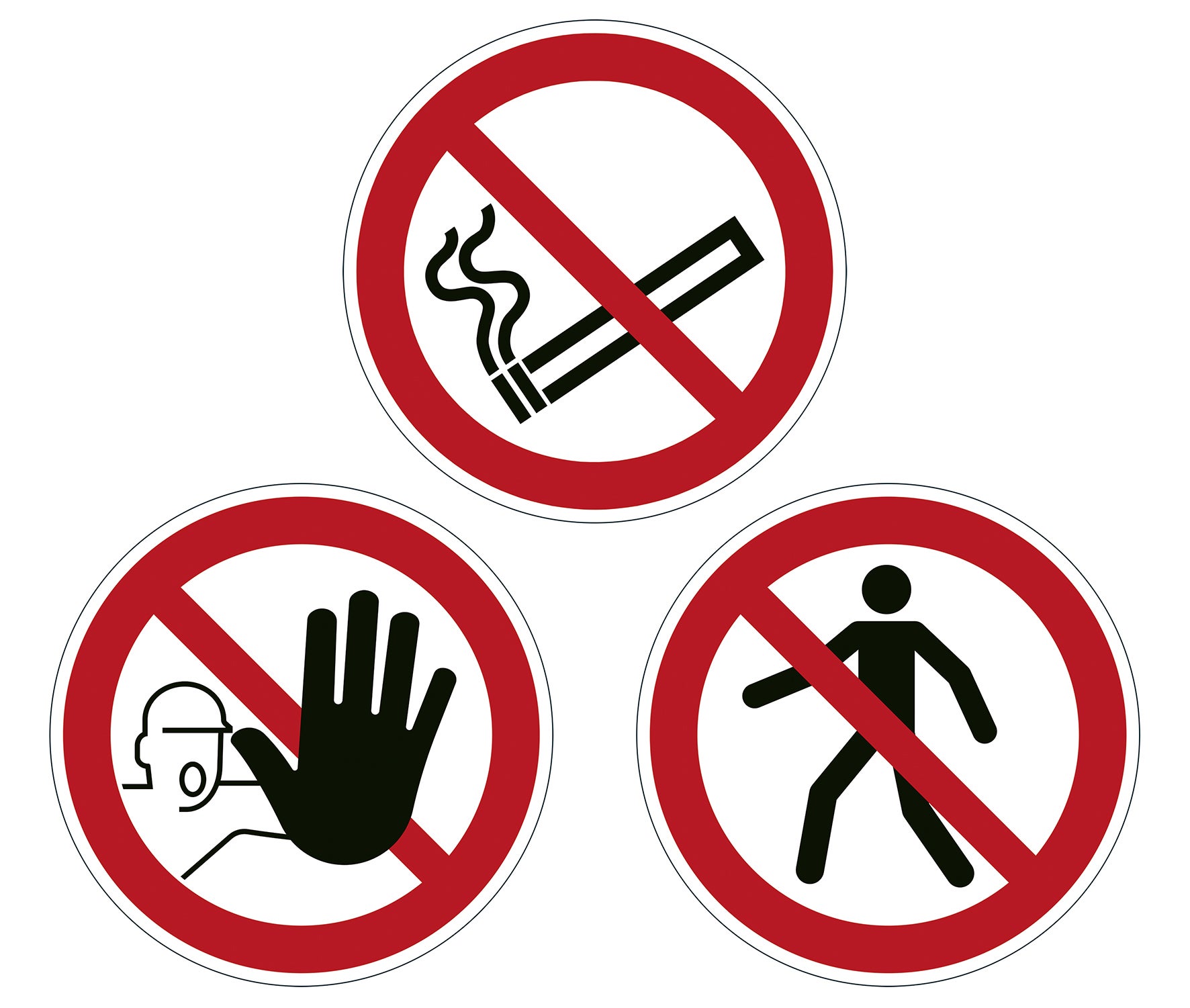 Fäster på rena och torra betonggolv. Slitstark och tålig med halkskyddsgrad R9 i enlighet med DIN 51130. Skyltarna uppfyller kraven i ISO 7010.