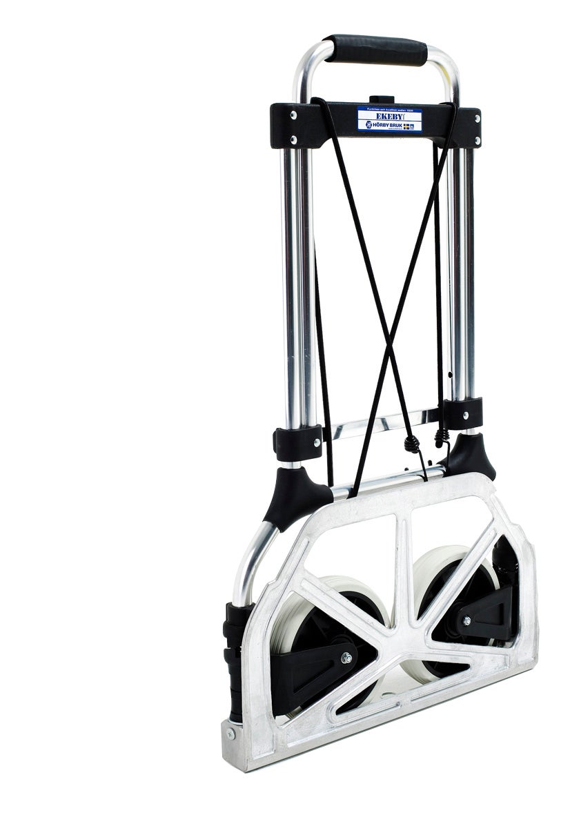 Bagagekärran Handy Flex från Hörby Bruk är en lätt och smidig bagagekärra i aluminium som tar upp liten plats när den är hopfälld. Utrustad med ett bekvämt och greppvänligt mjukt handtag. Har ett spännfixsystem/bagagerem som håller godset på plats. En enkel mekanism möjliggör att hjulen och lastplanet fälls in samtidigt, vilket ökar dess användarvänlighet och praktiska funktioner. Perfekt för dig som behöver transportera material, verktyg, lådor, väskor m.m. Kärran har punkteringsfria hjul.