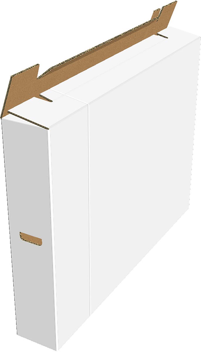 Tavellåda/Flyttlåda/Skrymmellåda 7 mm. För transport och flytt av tex tavlor. Med kraftig självlåsande förslutning, klamrad. Handtagshål på gavlarna. Återförslutningsbar. VB 5000 1/100.