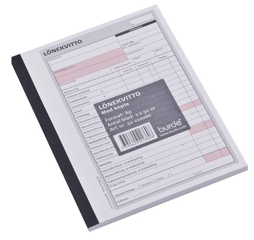 Lönekvitton i block med kopia.