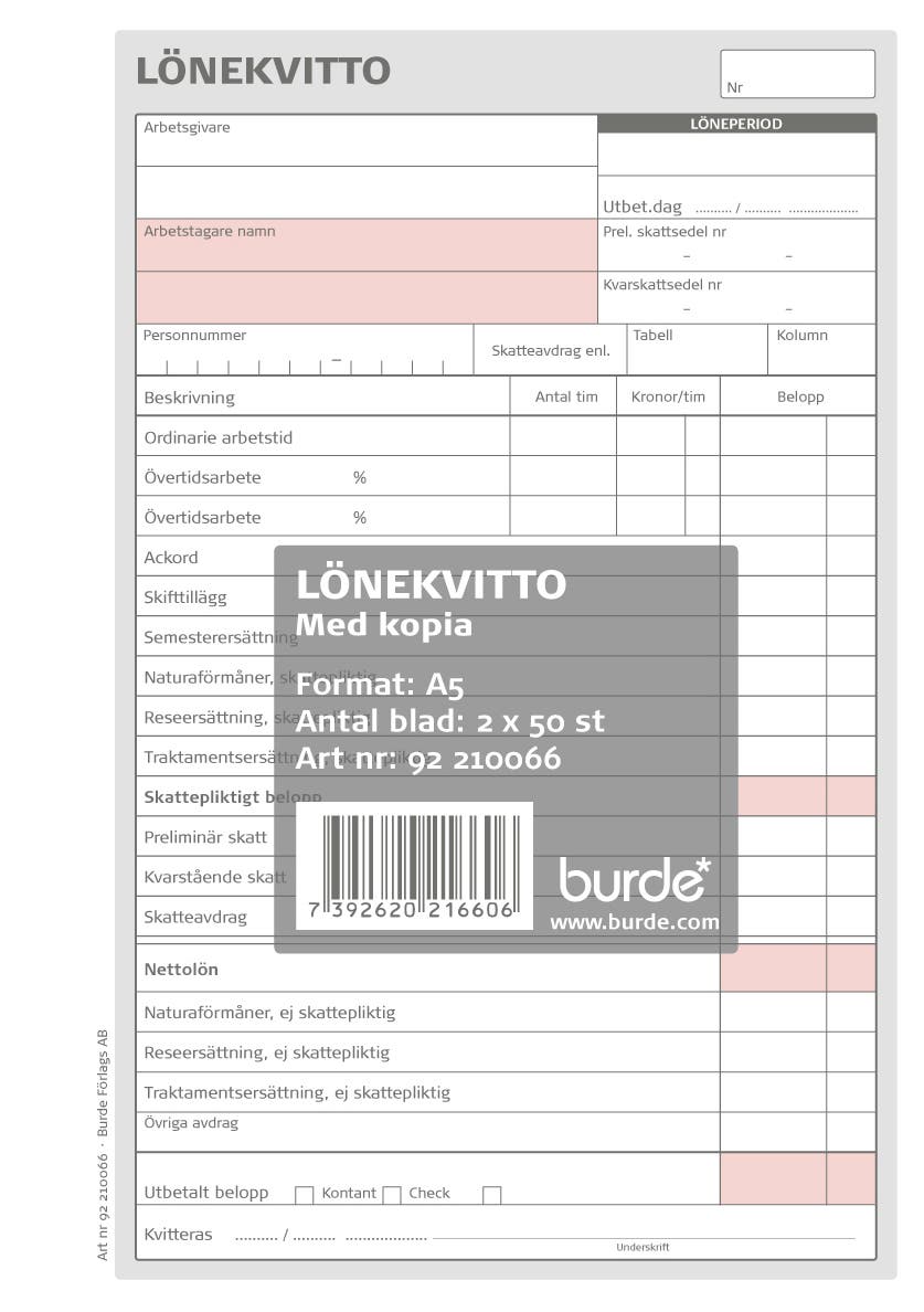| Namn | Lönekvitto A5 med kopia 2x50blad |