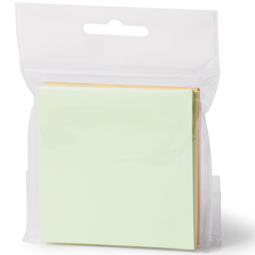 Självhäftande notislappar i sorterade färger.