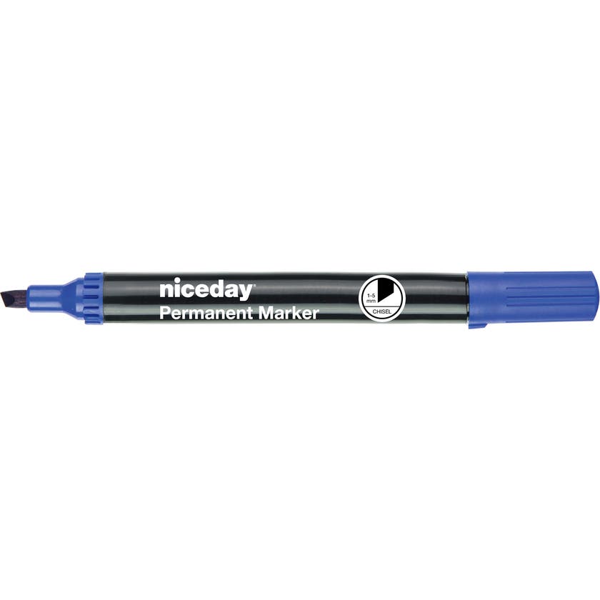 Märkpenna Niceday Permanent Marker med sned spets för märkning av alla slags ytor även glas, metall och trä. Alkoholbaserad, snabbtorkande och nästan luktfri.