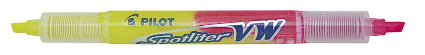 Överstrykningspennan Spotliter VW med två spetsar i superklara flourocerande färger – gul och rosa i en och samma penna. Praktiskt när du inte är på din plats på kontoret. Regulatorn säkerställer att du hela tiden har det perfekta bläckflödet.