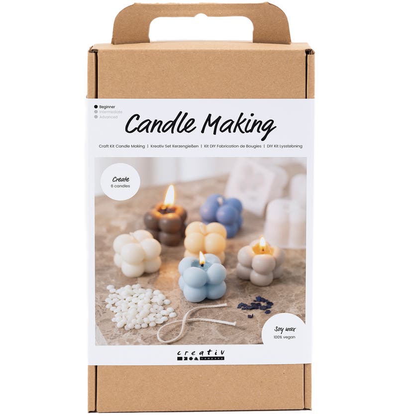 Skapa dina egna bubbelljus med detta ljusstöpningsset från Creativ Company. Förpackningen innehåller material för tillverkning av sex ljus. Alla instruktioner du behöver medföljer. Om du älskar de populära bubbelljusen som finns ute i handeln idag lämpar sig det här kitet utmärkt för dig. Ljusen stöps av 100% veganskt sojavax – ett naturmaterial som avger 80–90% mindre sot än vanliga ljus. Du kan även färga ljusen i blått, vitt och beige. De här bubbelljusen passar i alla interiörer. Tänd ljusen för en mysig stämning eller använd dem som dekoration på ett bord eller en hylla.