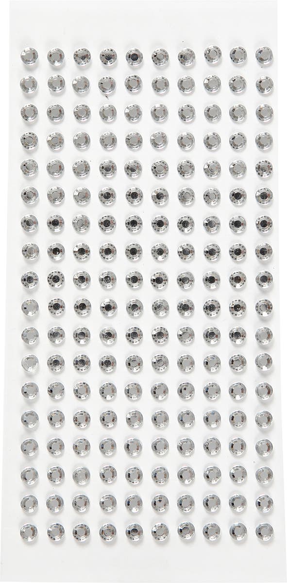 Självhäftande och runda rhinestones med facettslipad front och platt baksida.