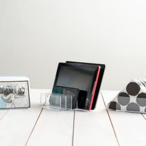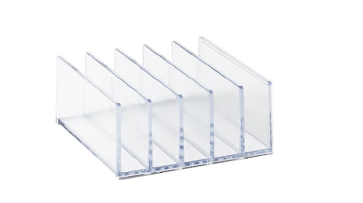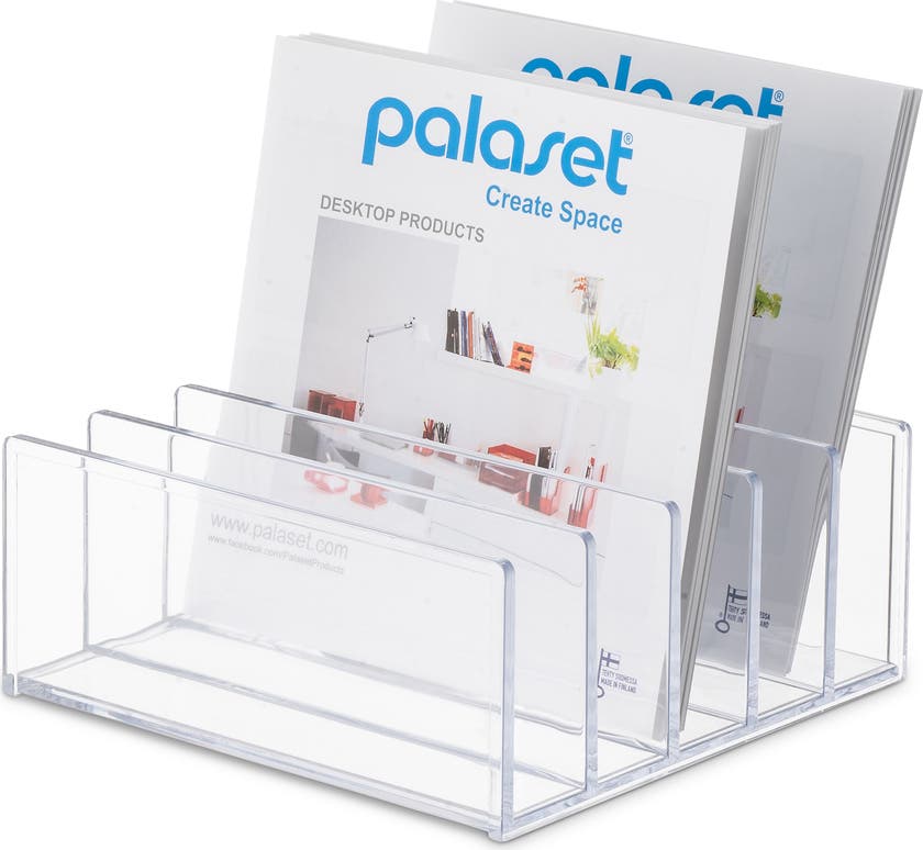 Brevställ Palaset med fem fack av transparent akrylplast. Mått: 13x13x5,5cm..