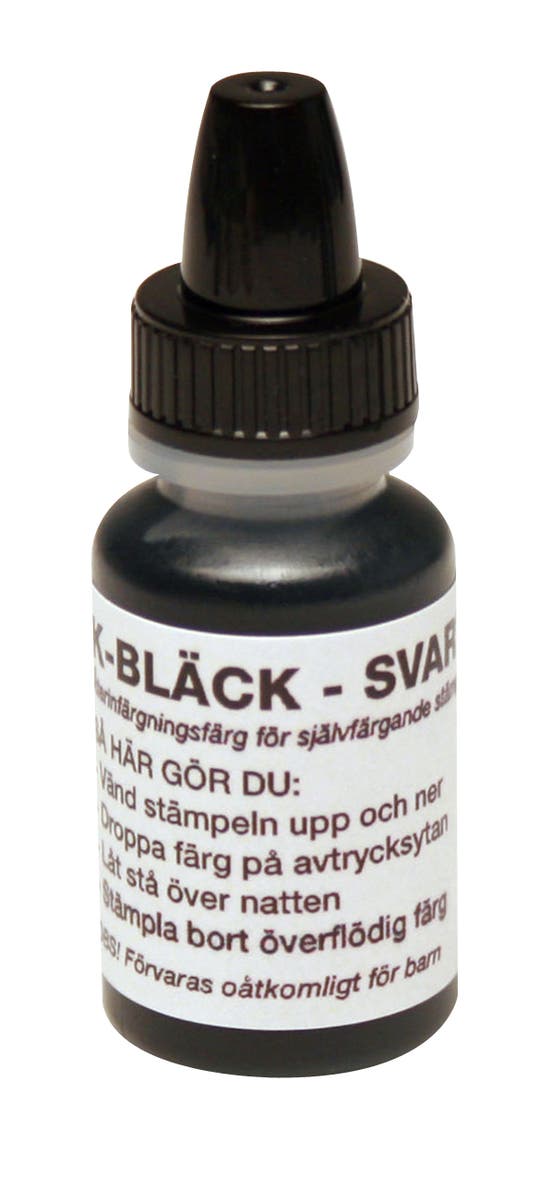 Stämpelfärg för återinfärgning av självfärgande stämplar som har torkat ut. Miljövänligt att återanvända dina stämplar i många år.