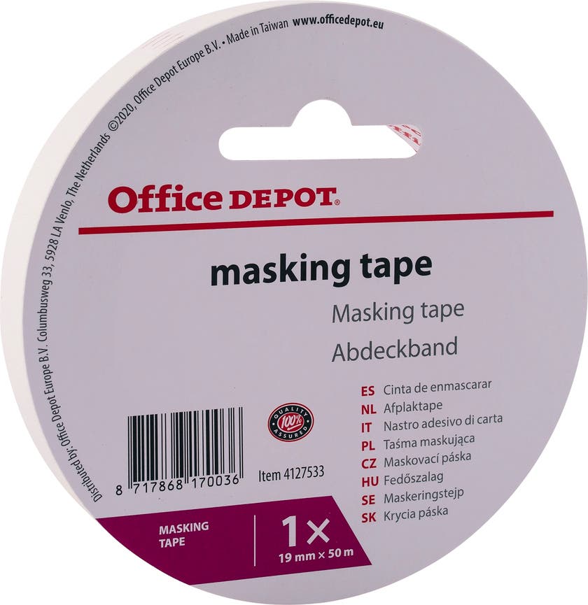 Självhäftande maskeringstejp från Office Depot är lämplig för allmänna ändamål som: maskering, fixering, lättare förslutning, exakta färgkanter mm.