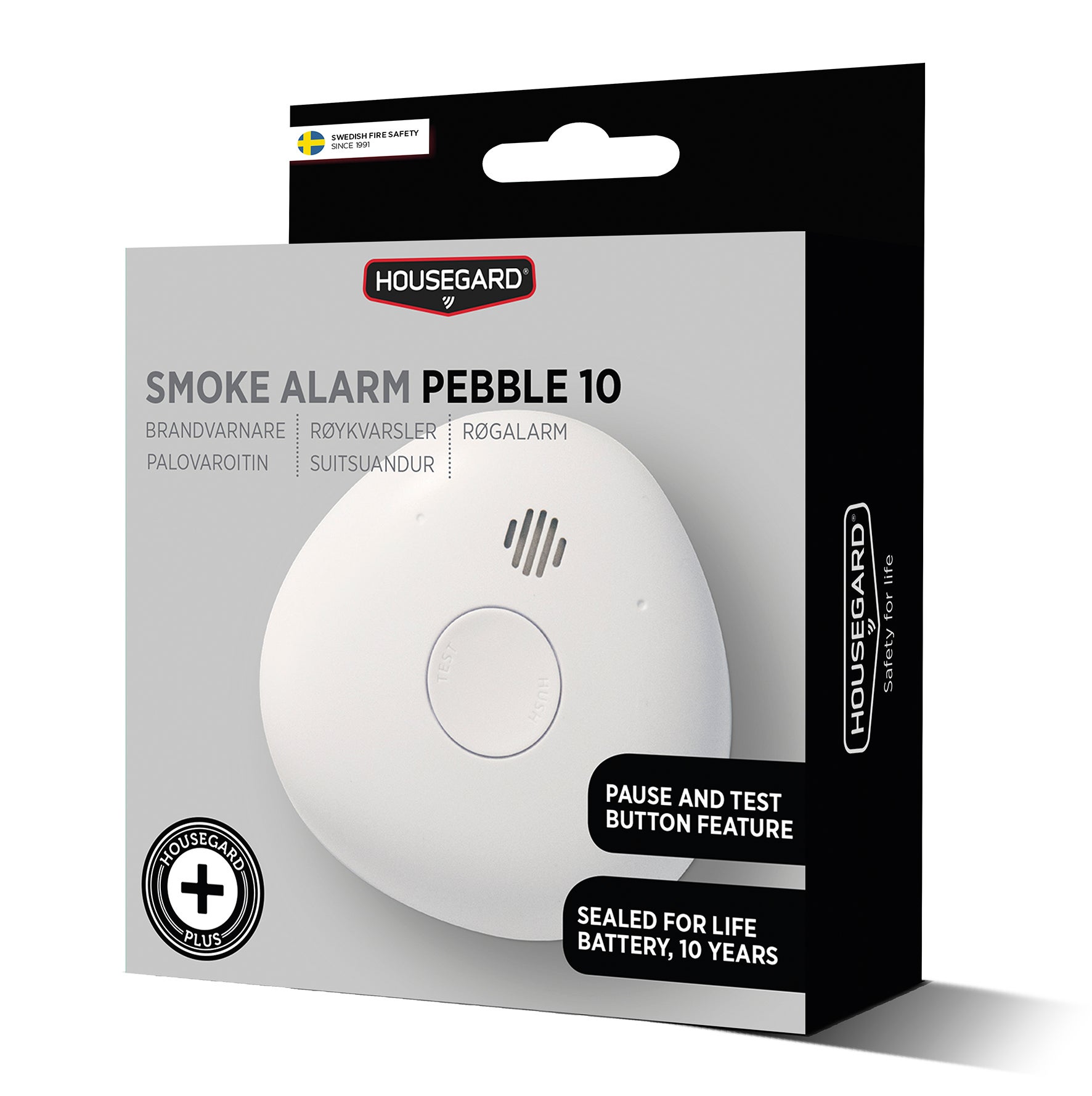 Brandvarnare Pebble 10 har en användarvänlig design som är enkel att pausa, testa och underhålla. Den har ett förseglat litiumbatteri som varar under brandvarnarens 10-åriga livslängd, en ytterligare säkerhetsfaktor eftersom du aldrig behöver fundera på att byta batteri.