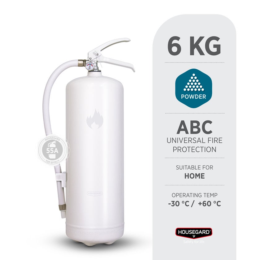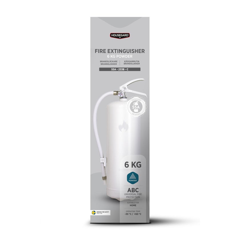 I vår strävan att brandsäkra Sverige har vi utvecklat Design by Housegard, ett koncept som utefter rådande trender tagits fram för att kunna placeras i ditt hem. Alla hem ska vara brandsäkrade. Ju högre släckeffekt en brandsläckare har desto större brand kan den släcka. Housegard 55A har marknadens högsta släckeffekt. Housegard 55A 6 kg pulver släcker de flesta typer av bränder, i så gott som alla material.