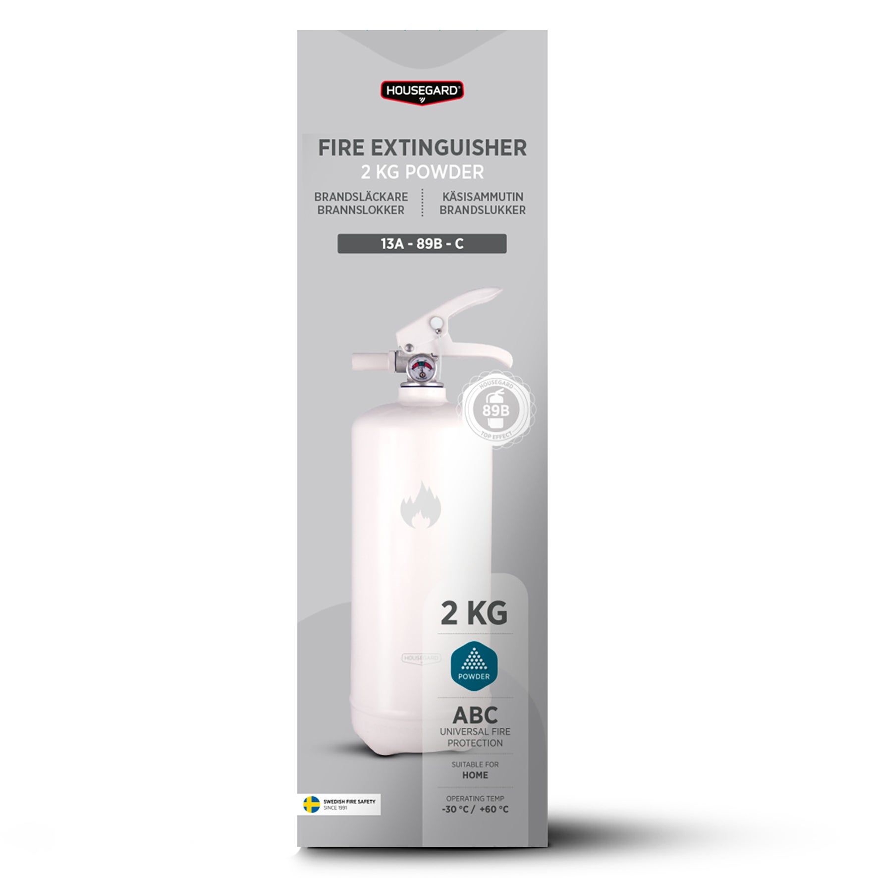 I vår strävan att brandsäkra Sverige har vi utvecklat Design by Housegard, ett koncept som utefter rådande trender tagits fram för att kunna placeras i ditt hem. Alla hem ska vara brandsäkrade. Ju högre släckeffekt en brandsläckare har desto större brand kan den släcka. Housegard 55A har marknadens högsta släckeffekt. Housegard 55A 6 kg pulver släcker de flesta typer av bränder, i så gott som alla material.