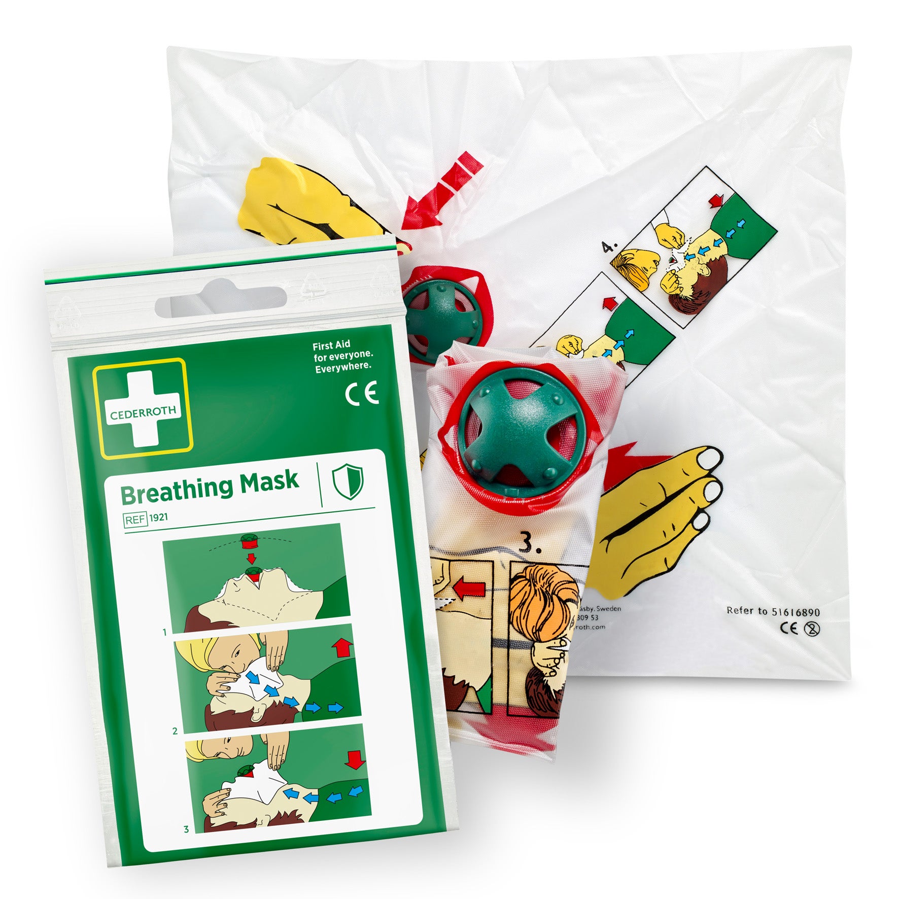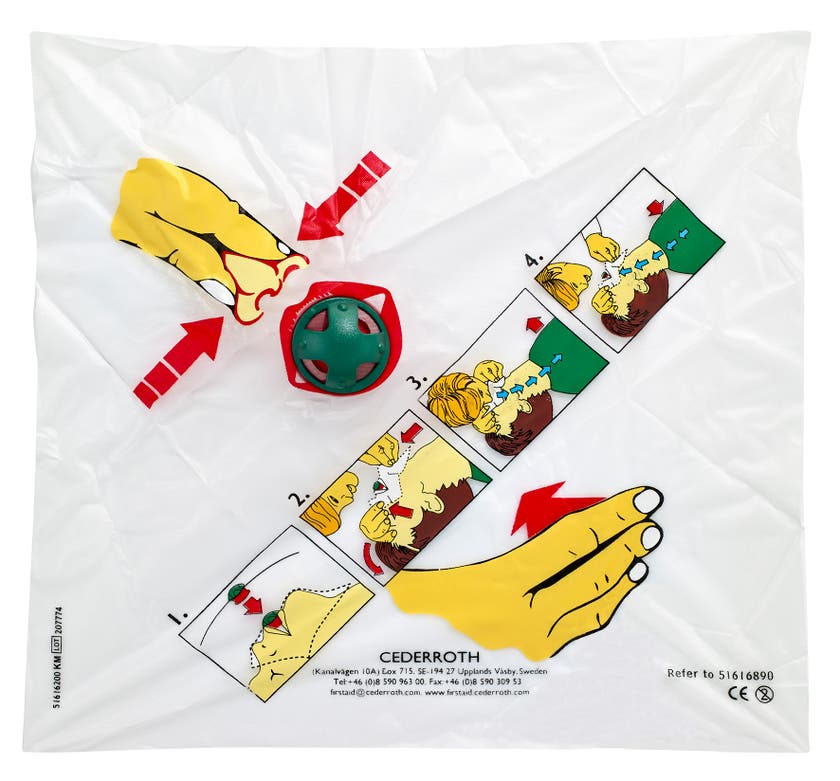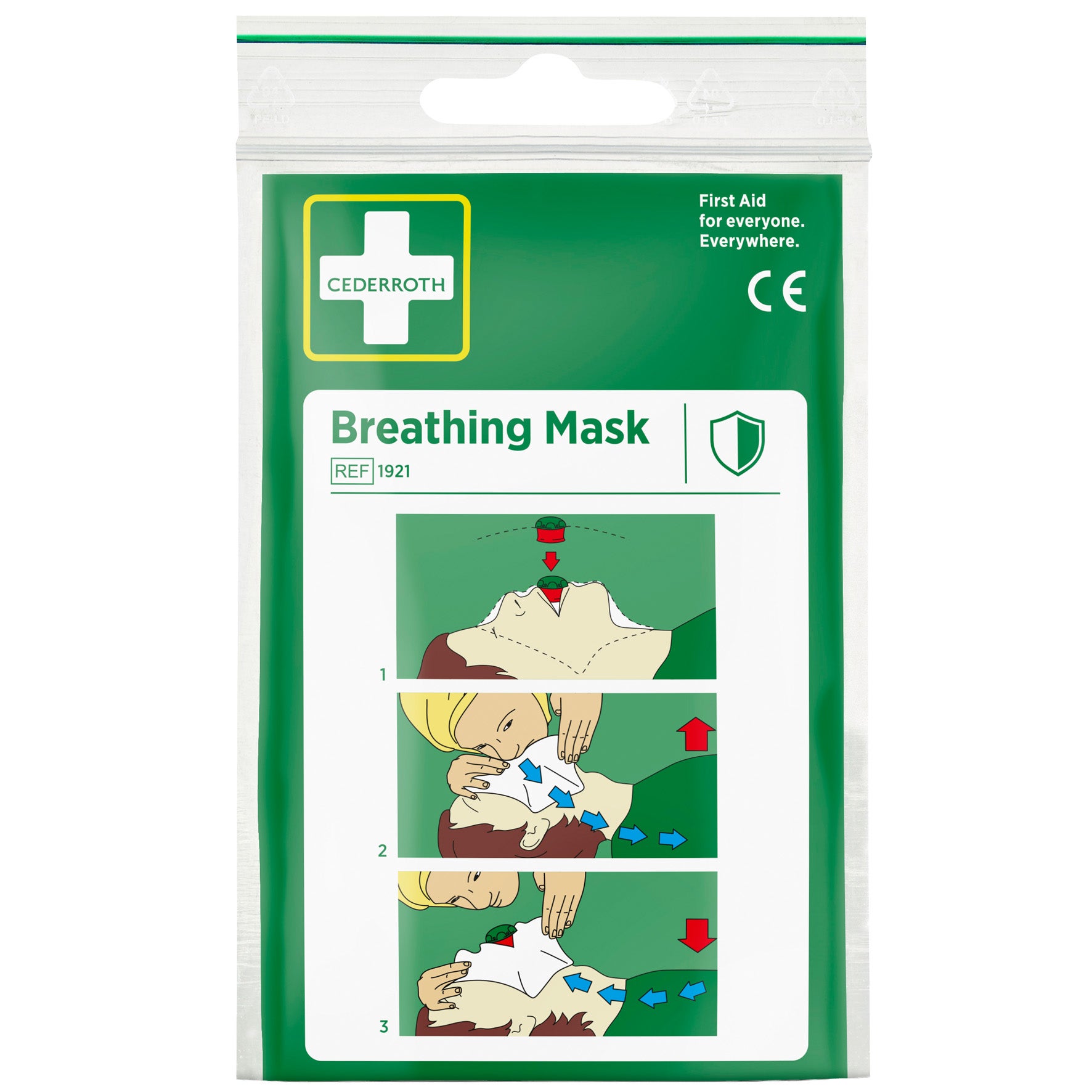 Cederroth Andningsmask 1921 är ett hjälpmedel för att ge mun-till-mun-andning på rätt sätt samtidigt som det minskar risken för kontakt mellan hjälpare och skadad.