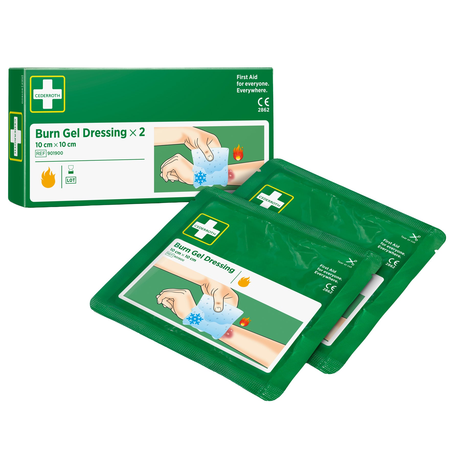 Cederroth Burn Gel Kompresser används vid ytliga och delvis djupa brännskador, skållningar, solsveda och elektriska brännskador. Kompressen kan placeras utanpå brända kläder.