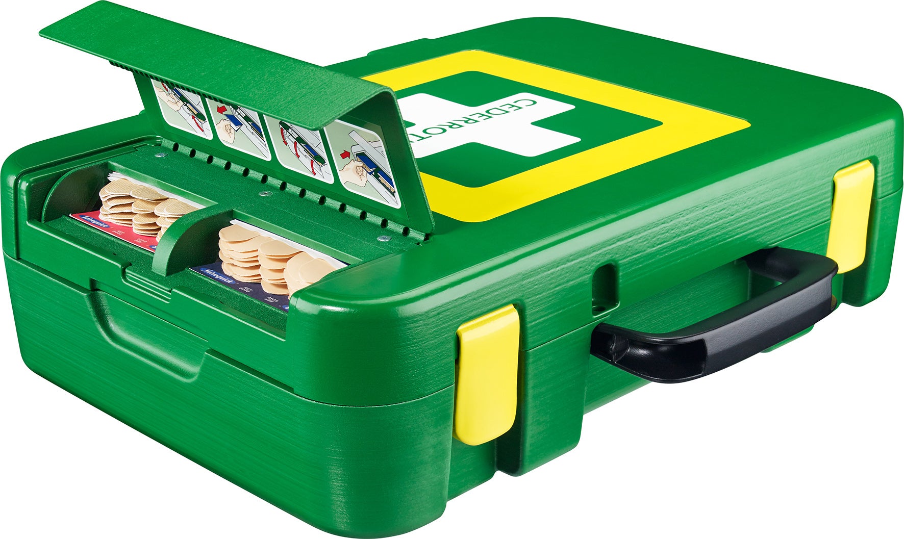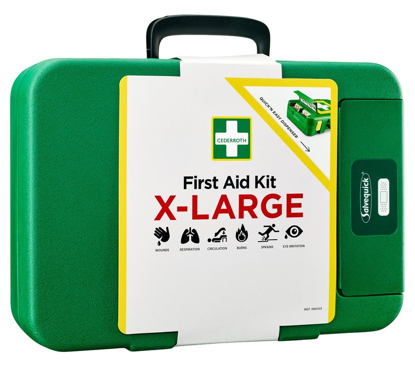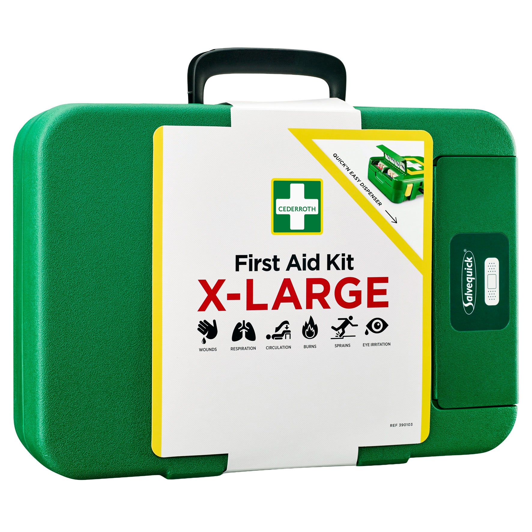 Cederroth First Aid Kit XL är ett bra komplement till väggfast utrustning för verksamheter som ofta är på språng eller som ryck-väska att ta med när hjälpen behövs längre bort. Robust och tålig väska i hårdplast för att hålla damm, fukt och smuts utanför även i hårda miljöer. Salvequick Plåsterautomat på utsidan gör det enkelt och snabbt att ta ett plåster samtididigt som innehållet i väskan lämnas orört tills det verkligen behövs.