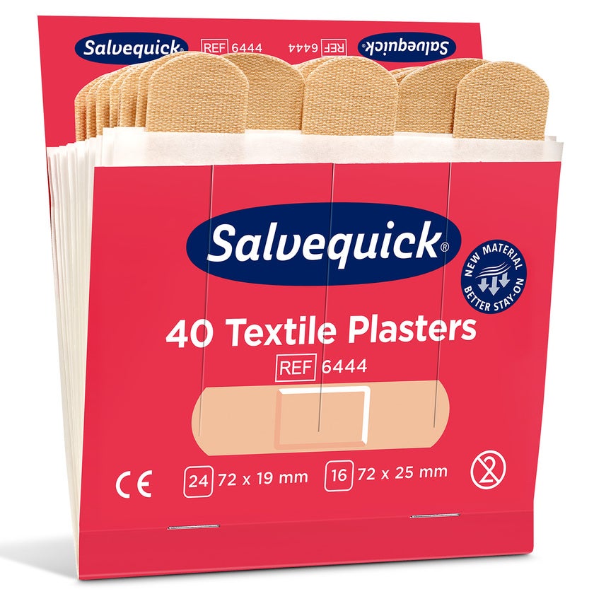 Refill med Salvequick plåster till plåsterautomat. Salvequick plåster är smidiga plåster av hög kvalitet. De är lätta att applicera, flexibla och smidiga att använda.