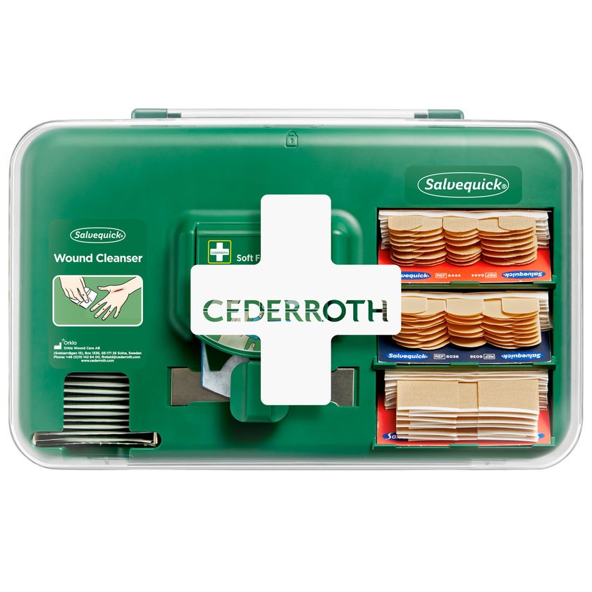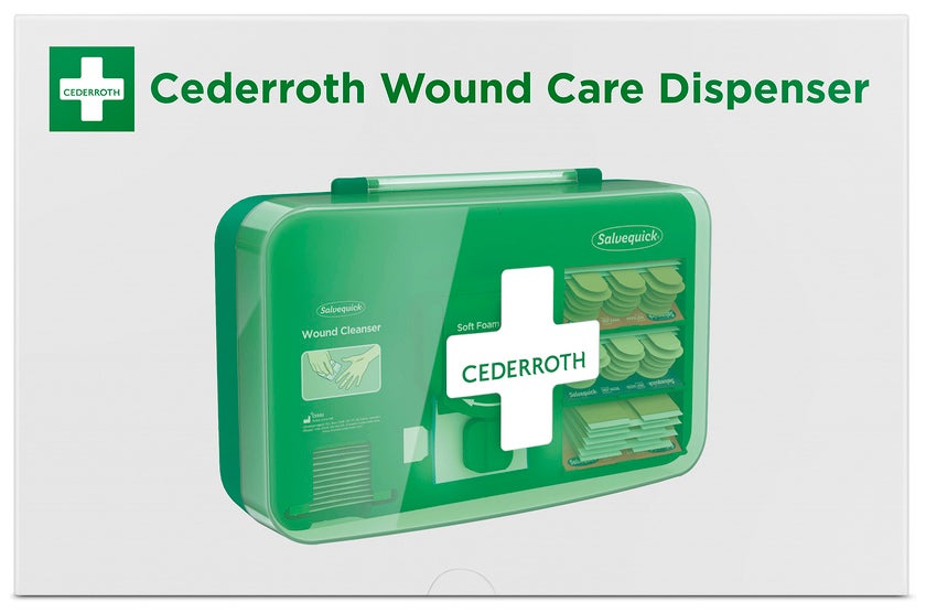 Sårvård i en praktisk dispenser Wound Care från Cederroth. Enkelt, lättillgängligt och välorganiserat. Det mesta du behöver för att enkelt kunna ta hand om mindre sårskador från en praktisk dispenser. Smart komplement till övrig Första Hjälpen utrustning. Produkterna är fastlåsta vilket förhindrar svinn.