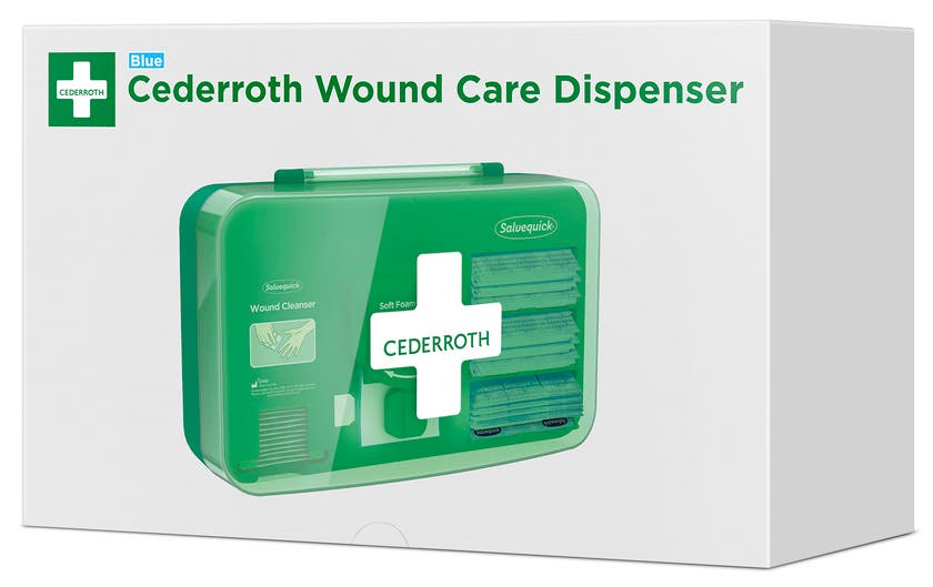 Sårvård i en praktisk dispenser Wound Care Blue från Cederroth. Speciellt anpassad för restauranger & livsmedelsindustrin. Det mesta du behöver för att ta hand om mindre sårskador i en praktisk dispenser. Smart komplement till övrig Första Hjälpen utrustning.