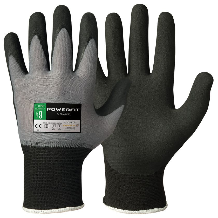 - Nitrilskumbeläggningen drar vatten och olja åt sidan