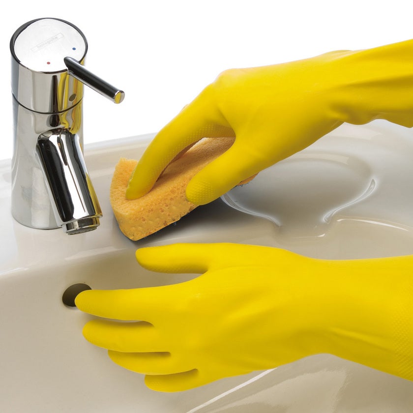 Kemikalieresistenta handskar i latex med flossat bomullsfoder.