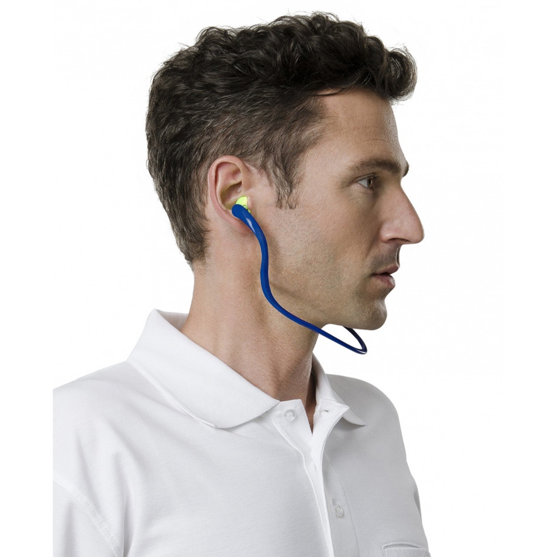 Hörselproppar på bygel i ny design för att minimera kontaktljud från bland annat kläderna under arbetet. Den anatomiska bygeln ger maximal rörelsefrihet