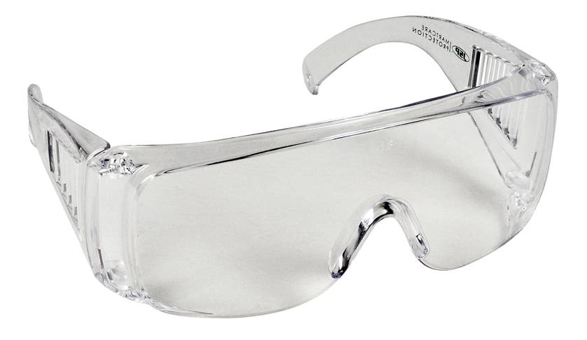 Slipglasögon med klar lins och sidoskydd, tillverkade av polykarbonat. Glasögonen kan bäras utanpå användarens egna glasögon. Lämpliga även som besöksglasögon. Godkända enligt EN 166.