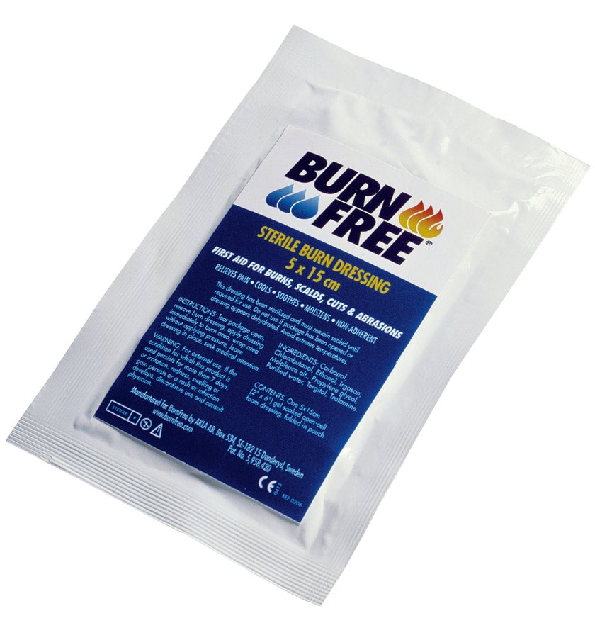Brännskadekompress Forburns 5 x 15 cm steril displaykartong. Brännskadekompress kan användas som Första Hjälpen på alla brännskador (ej kemiska) oavsett djup och omfattning.