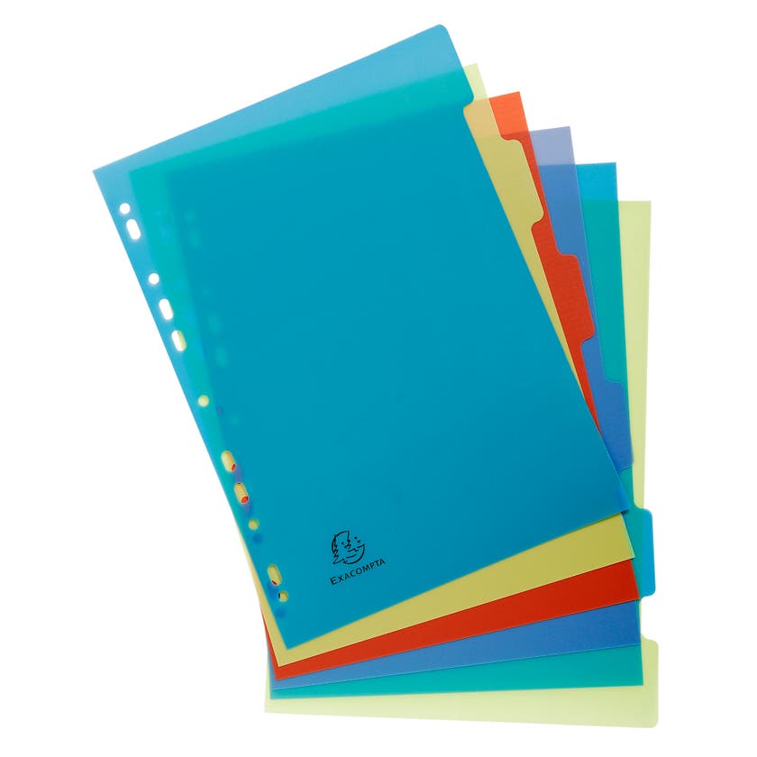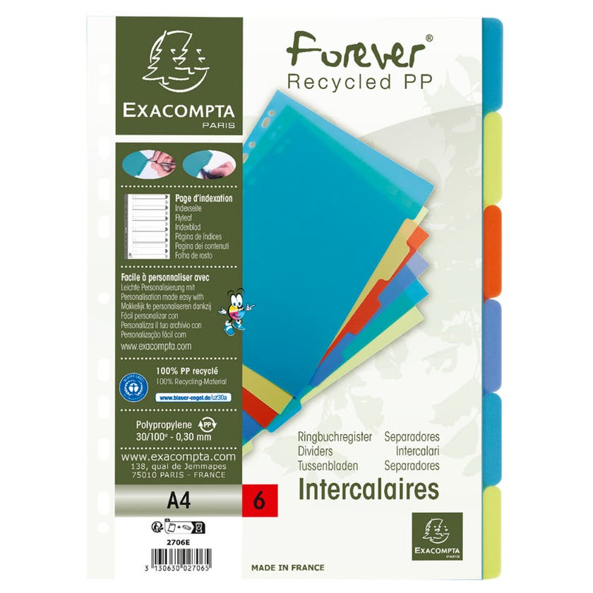 Register A4 returplast med flerfärgade flikar. Pärmregister A4 med flikar i olika färger och försättsblad. Tillverkad av returplast, polypropylen 0,3 mm.